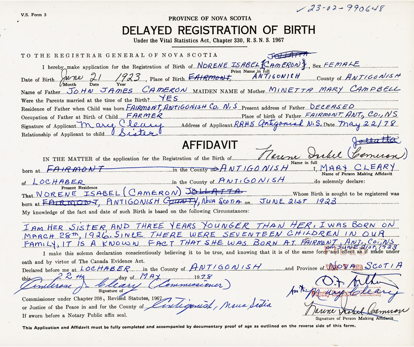 Date of Birth June 21, 1923 Place of Birth AntigonishCounty of Antigonish