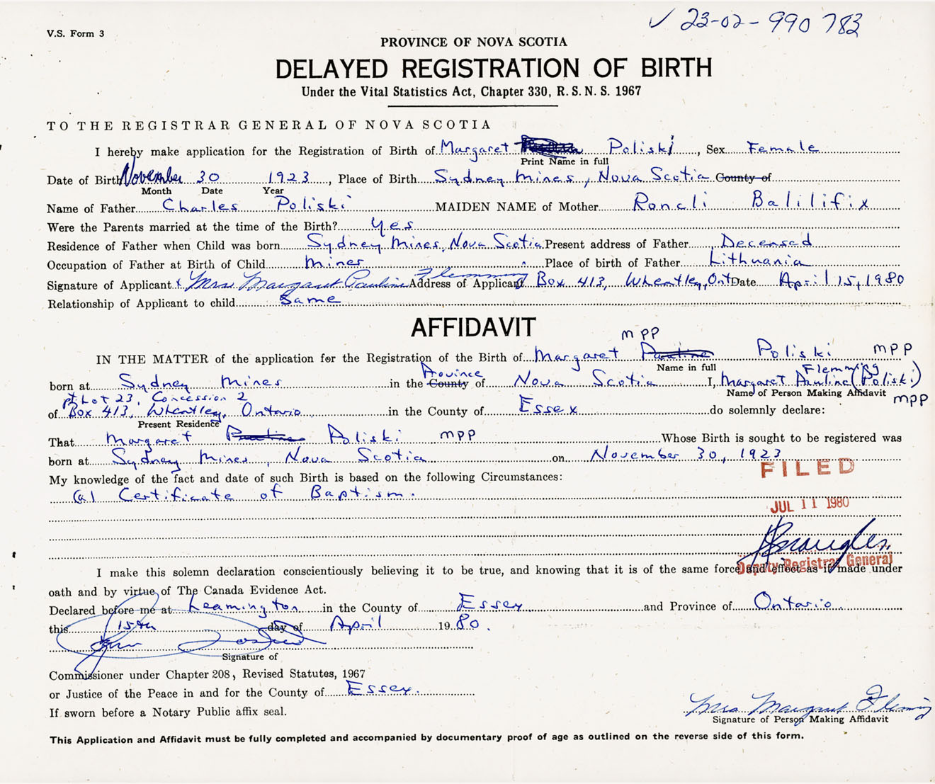 IN THE MATTER of the application for the Registration of the Birth of MargaretPoliski