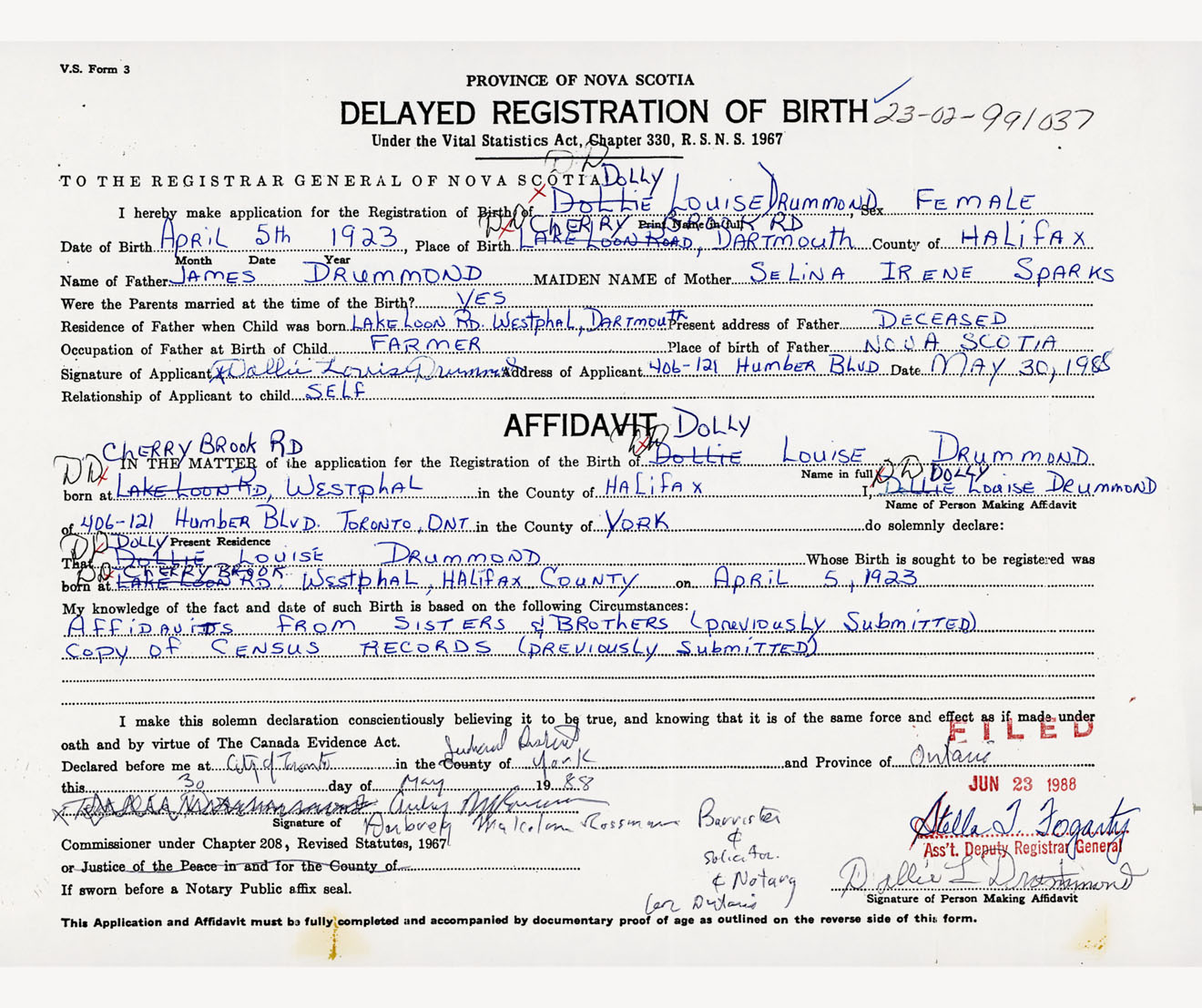 Date of Birth April 5, 1923 Place of Birth Cherrybrook road, DartmouthCounty of Halifax