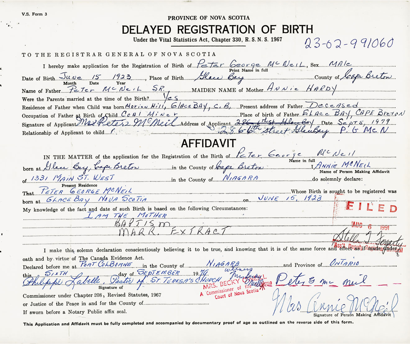 That Peter GeorgeMcNeil Whose Birth is sought to be registered was
