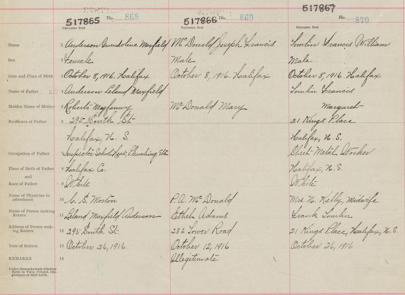 3. October 8, 1916. Halifax