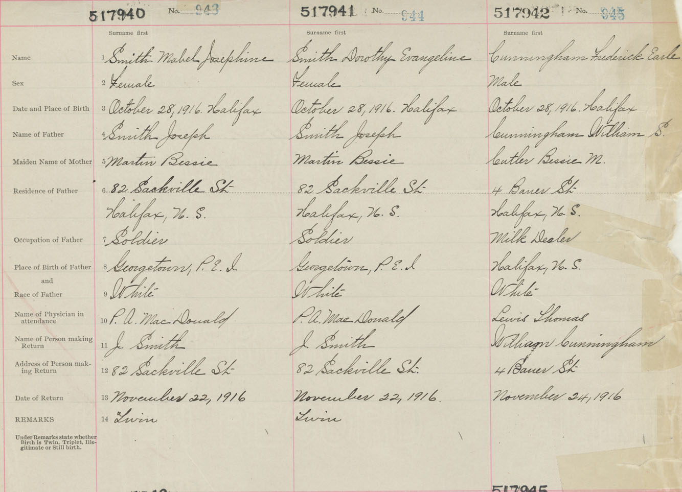 Male Birth Registration: Year: 1916 number: 51700942