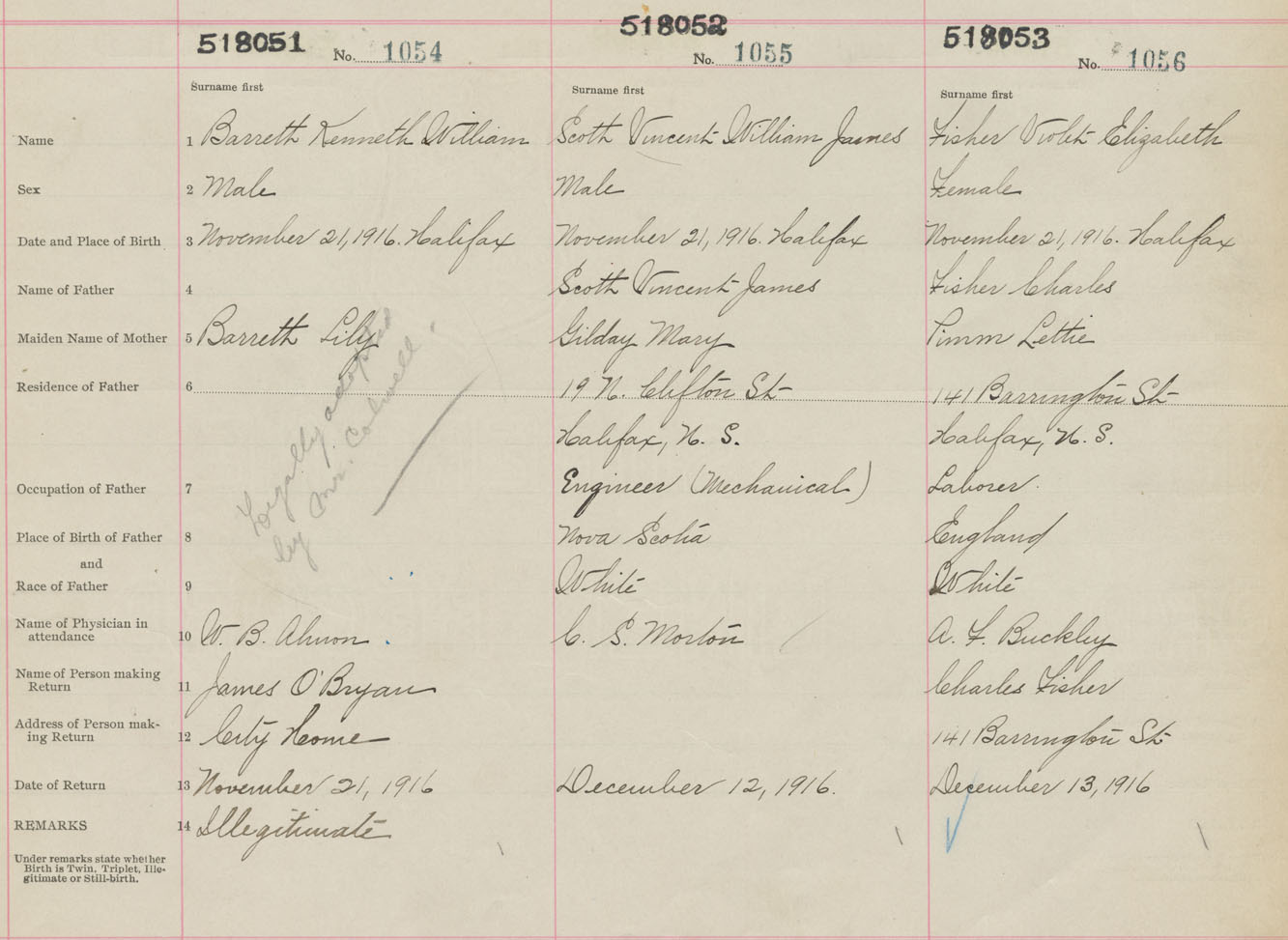 Female Birth Registration: Year: 1916 number: 51800053