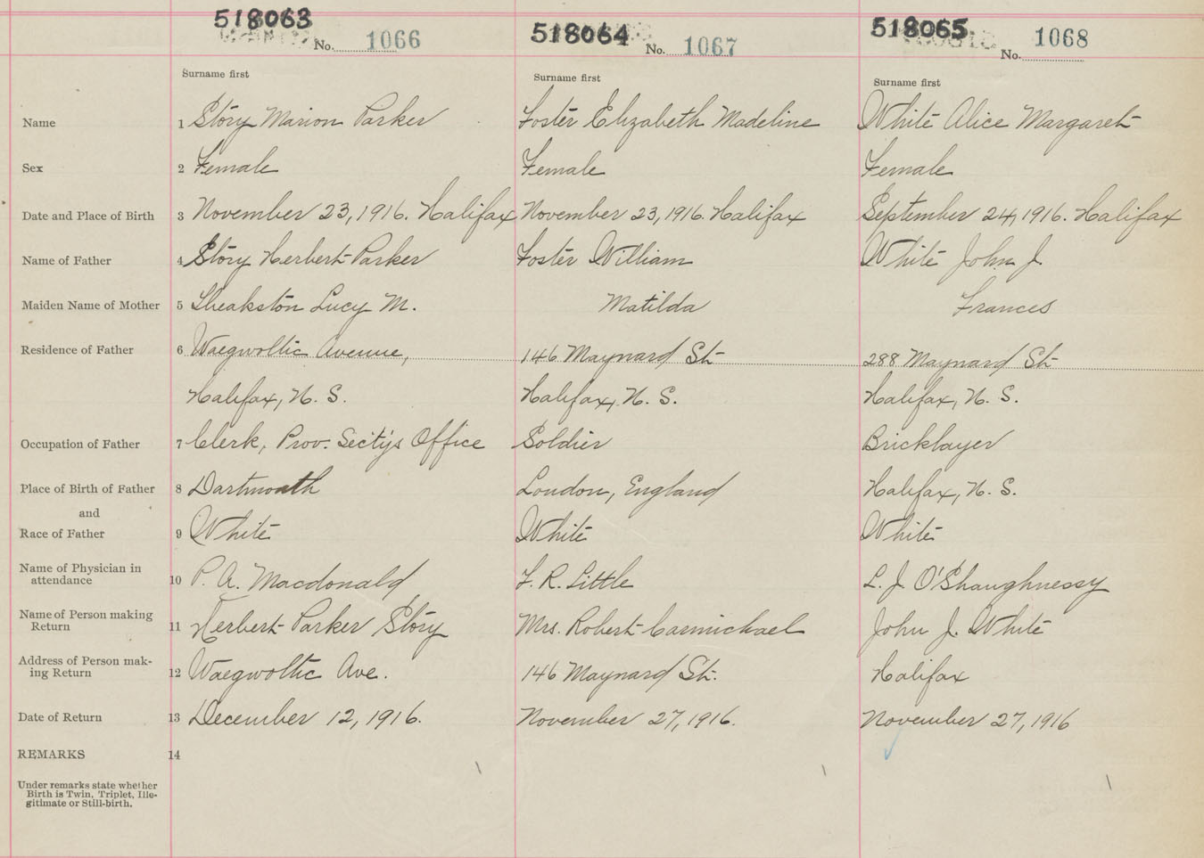 Female Birth Registration: Year: 1916 number: 51800065