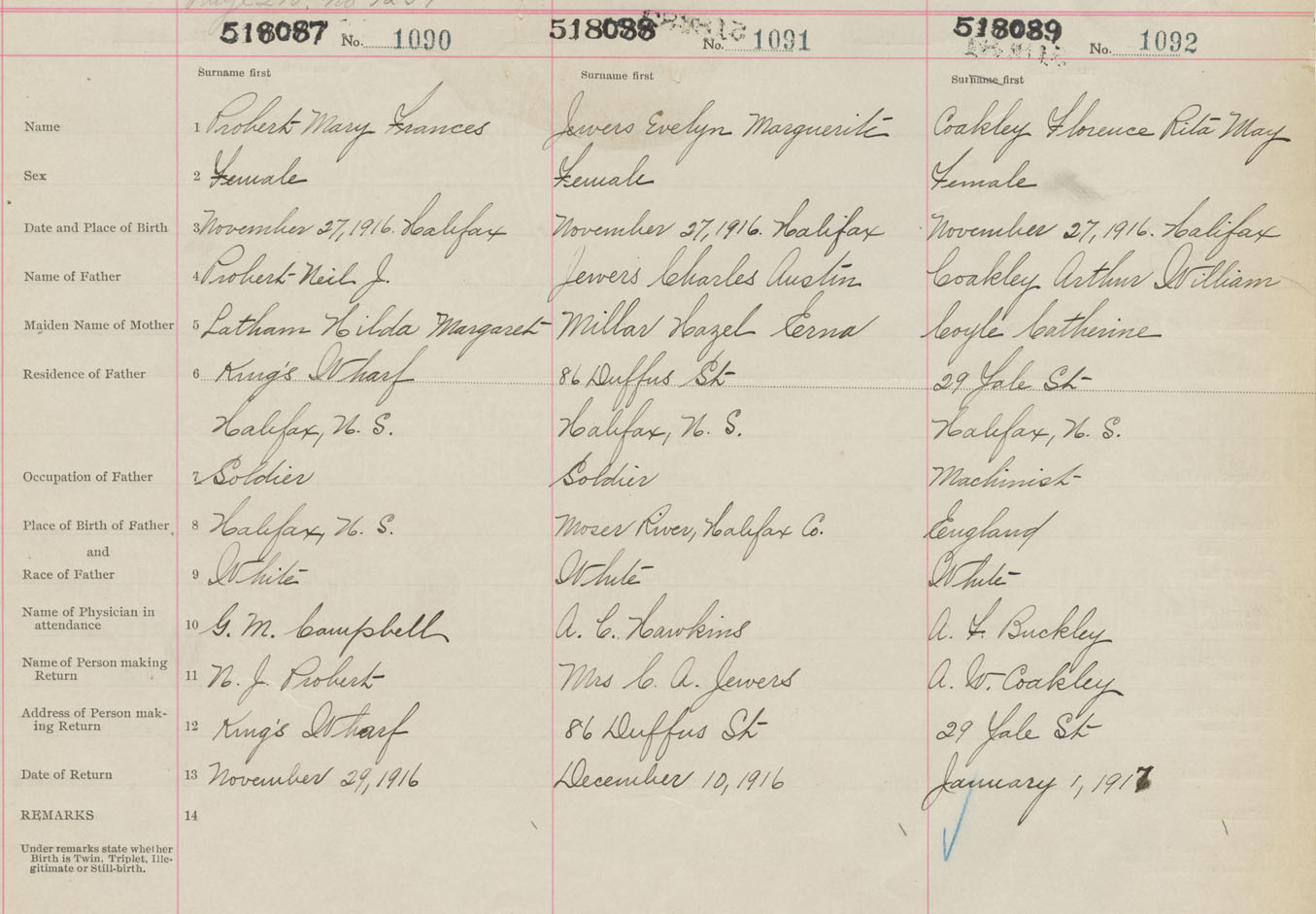 Female Birth Registration: Year: 1916 number: 51800089
