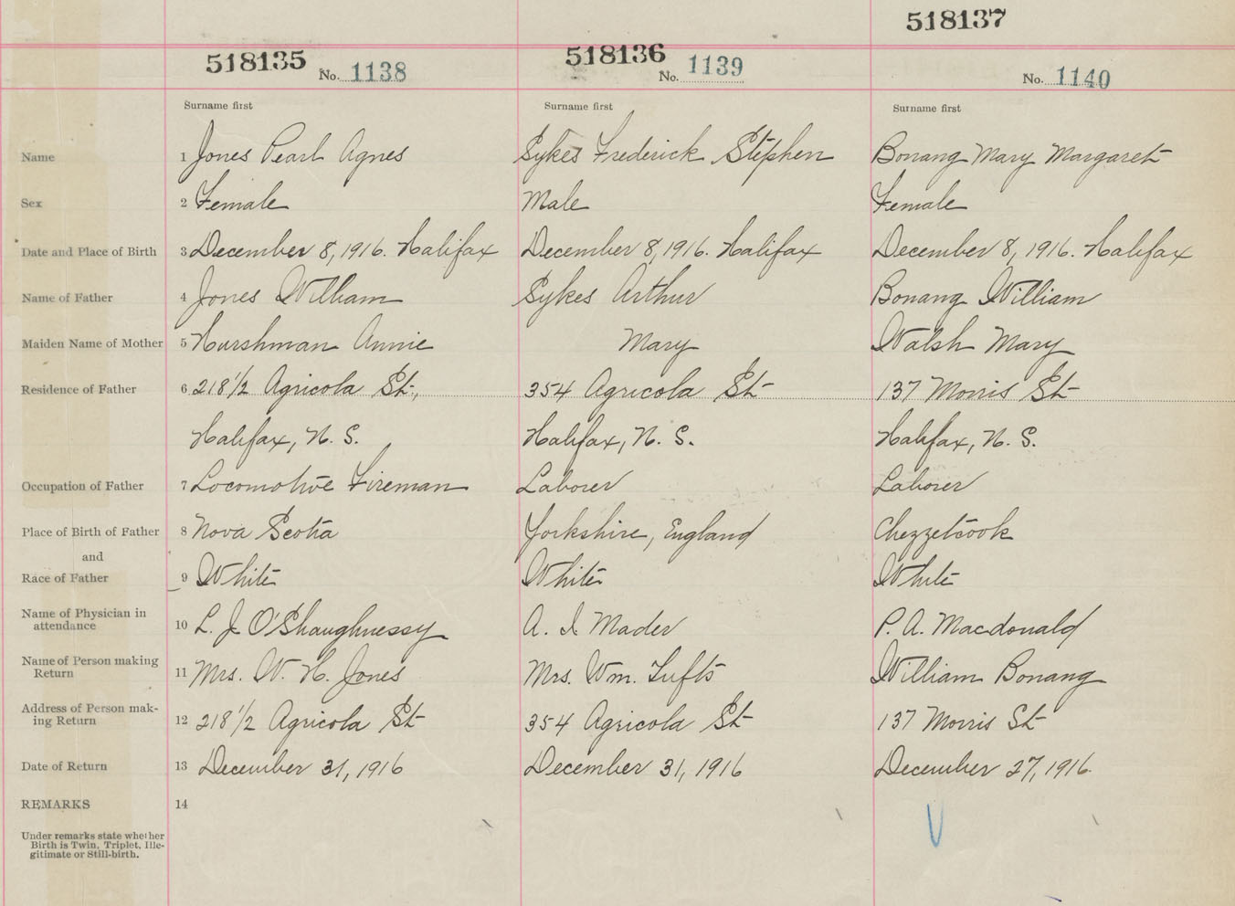 Female Birth Registration: Year: 1916 number: 51800137