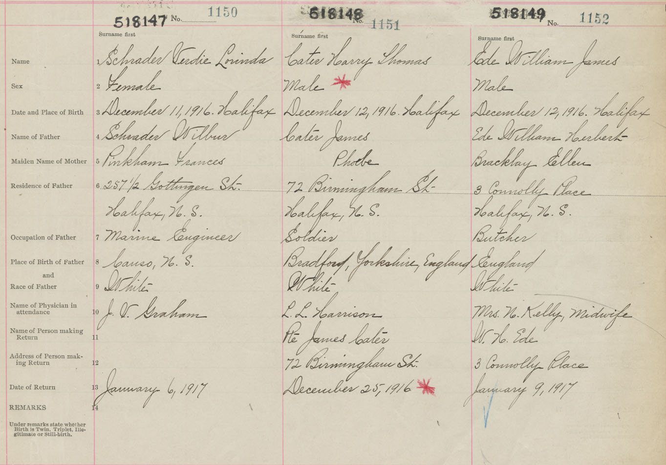 Male Birth Registration: Year: 1916 number: 51800148