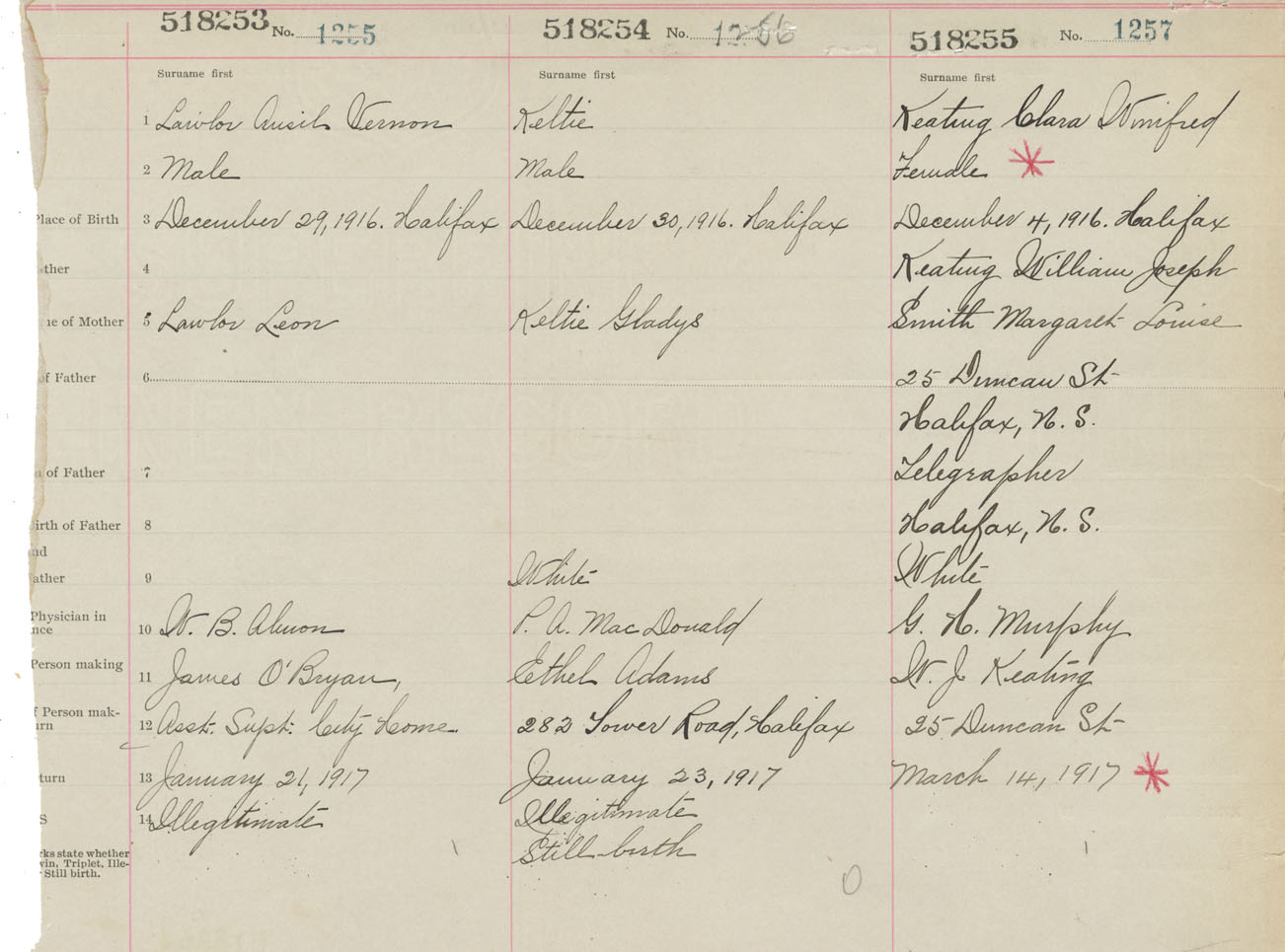 Female Birth Registration: Year: 1916 number: 51800255