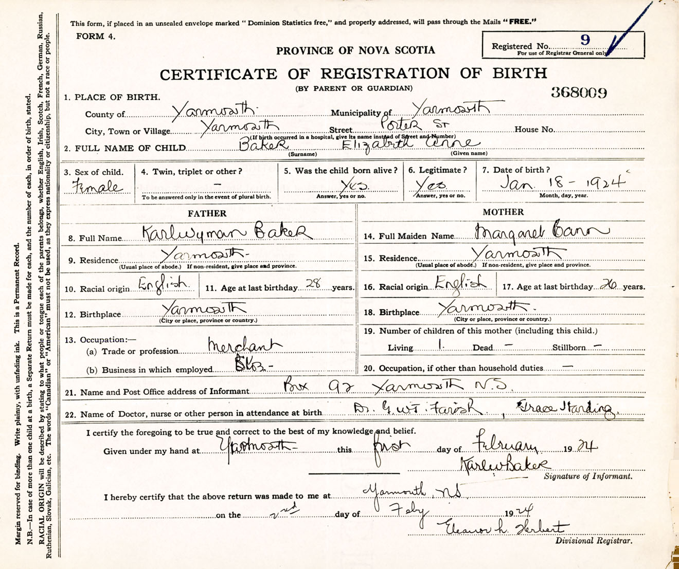 Female Birth Registration: Year: 1924 number: 36800009
