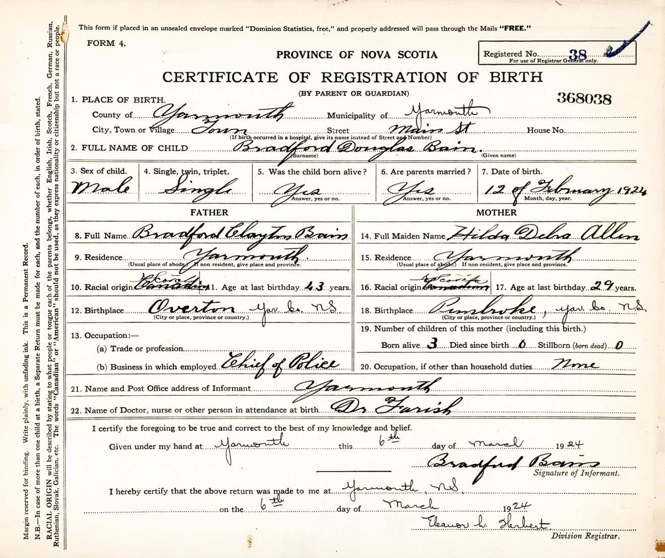 Male Birth Registration: Year: 1924 number: 36800038