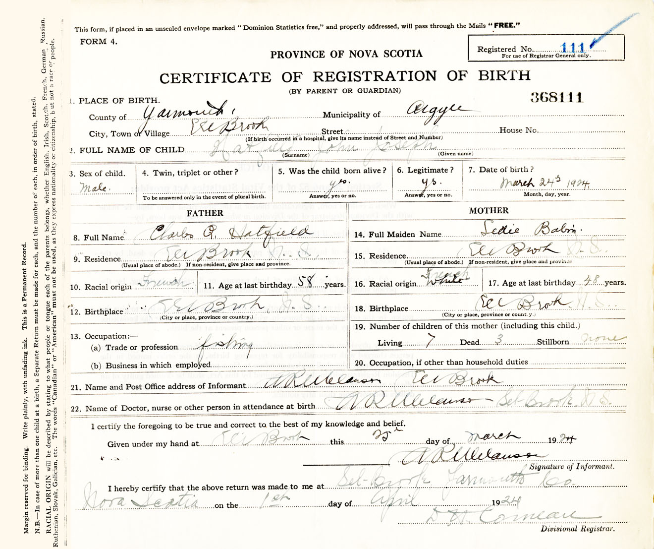 Male Birth Registration: Year: 1924 number: 36800111