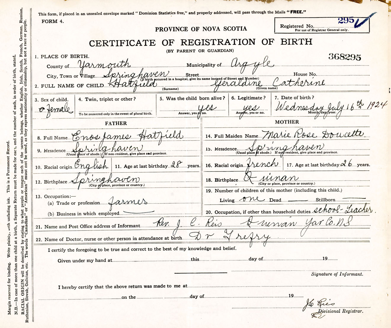 Female Birth Registration: Year: 1924 number: 36800295