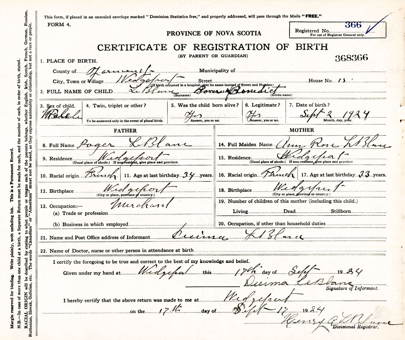 Male Birth Registration: Year: 1924 number: 36800366