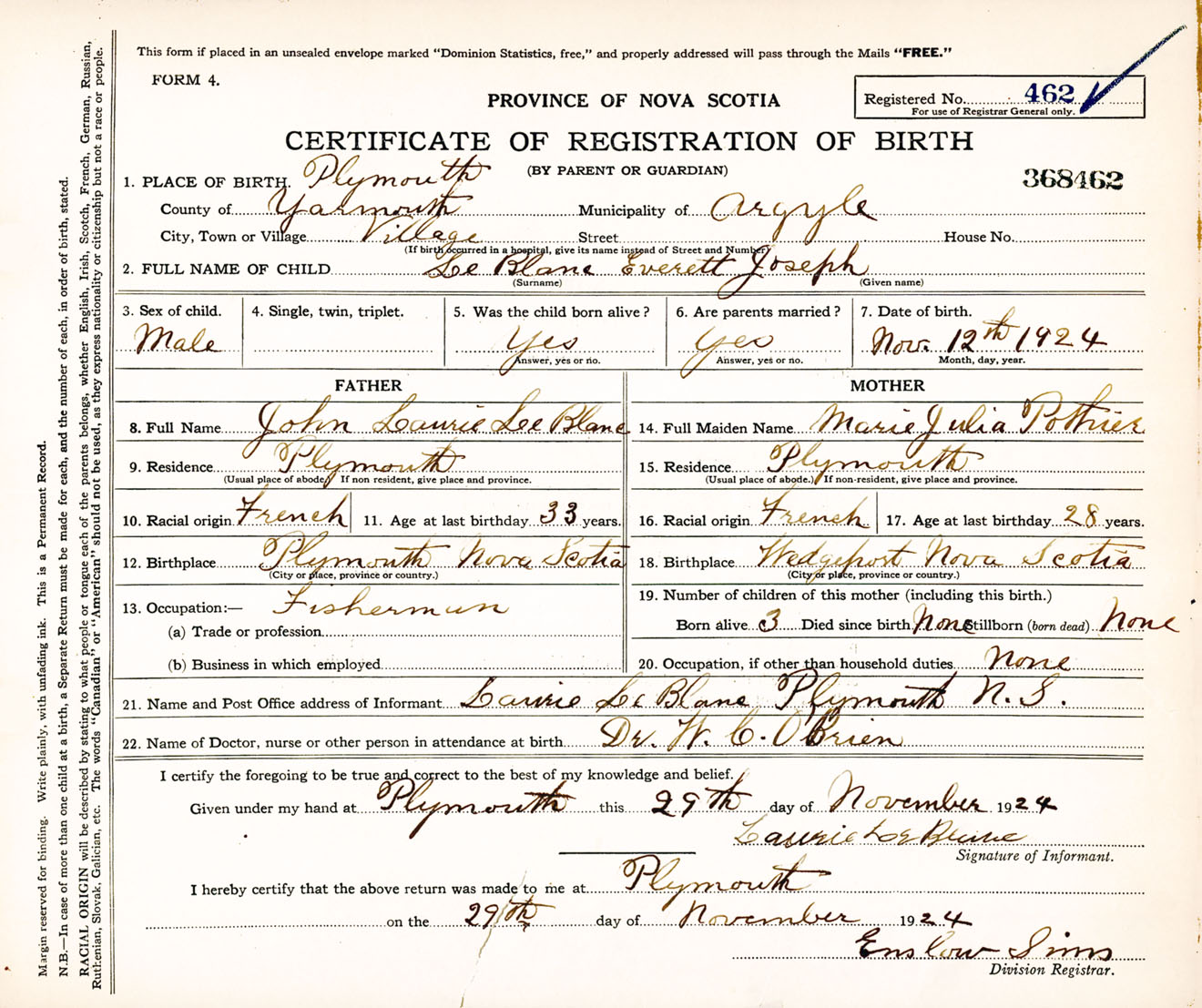 Male Birth Registration: Year: 1924 number: 36800462