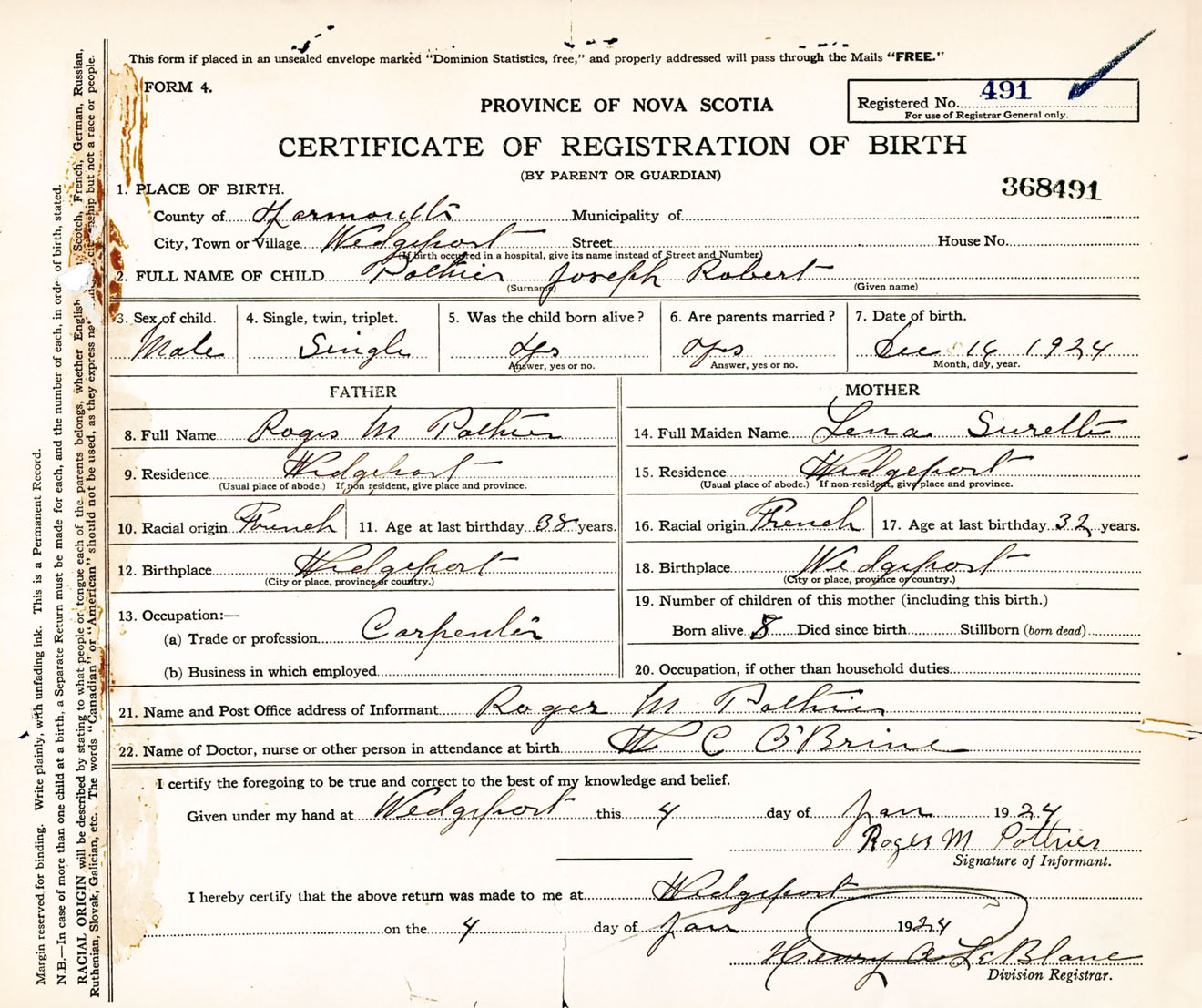 Male Birth Registration: Year: 1924 number: 36800491