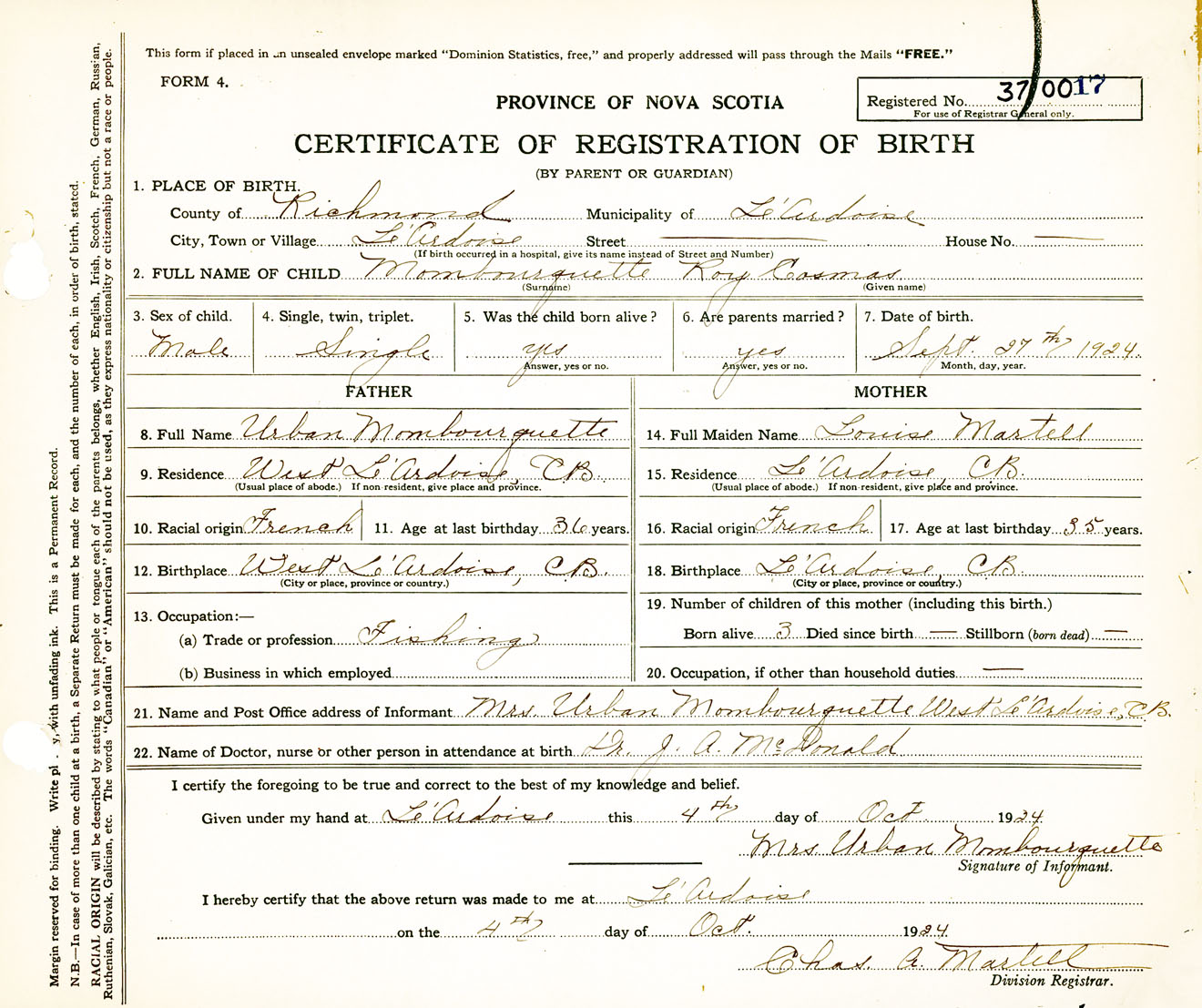 Male Birth Registration: Year: 1924 number: 37000017