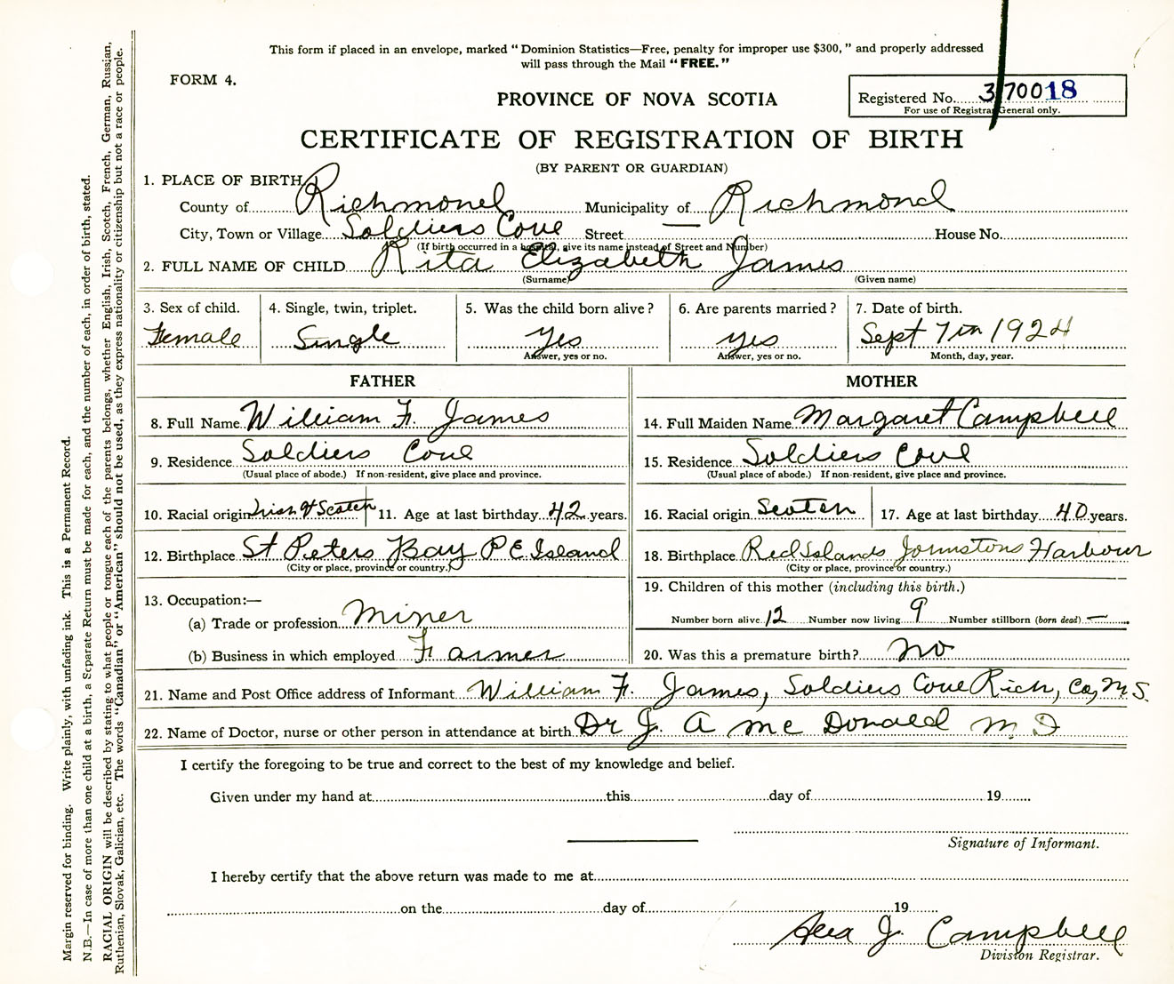 Female Birth Registration: Year: 1924 number: 37000018