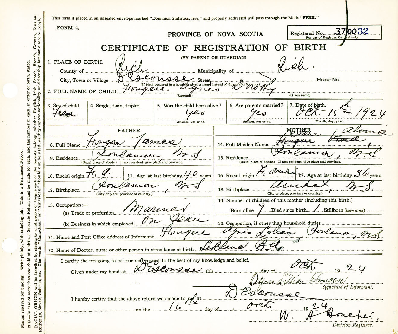 Female Birth Registration: Year: 1924 number: 37000032