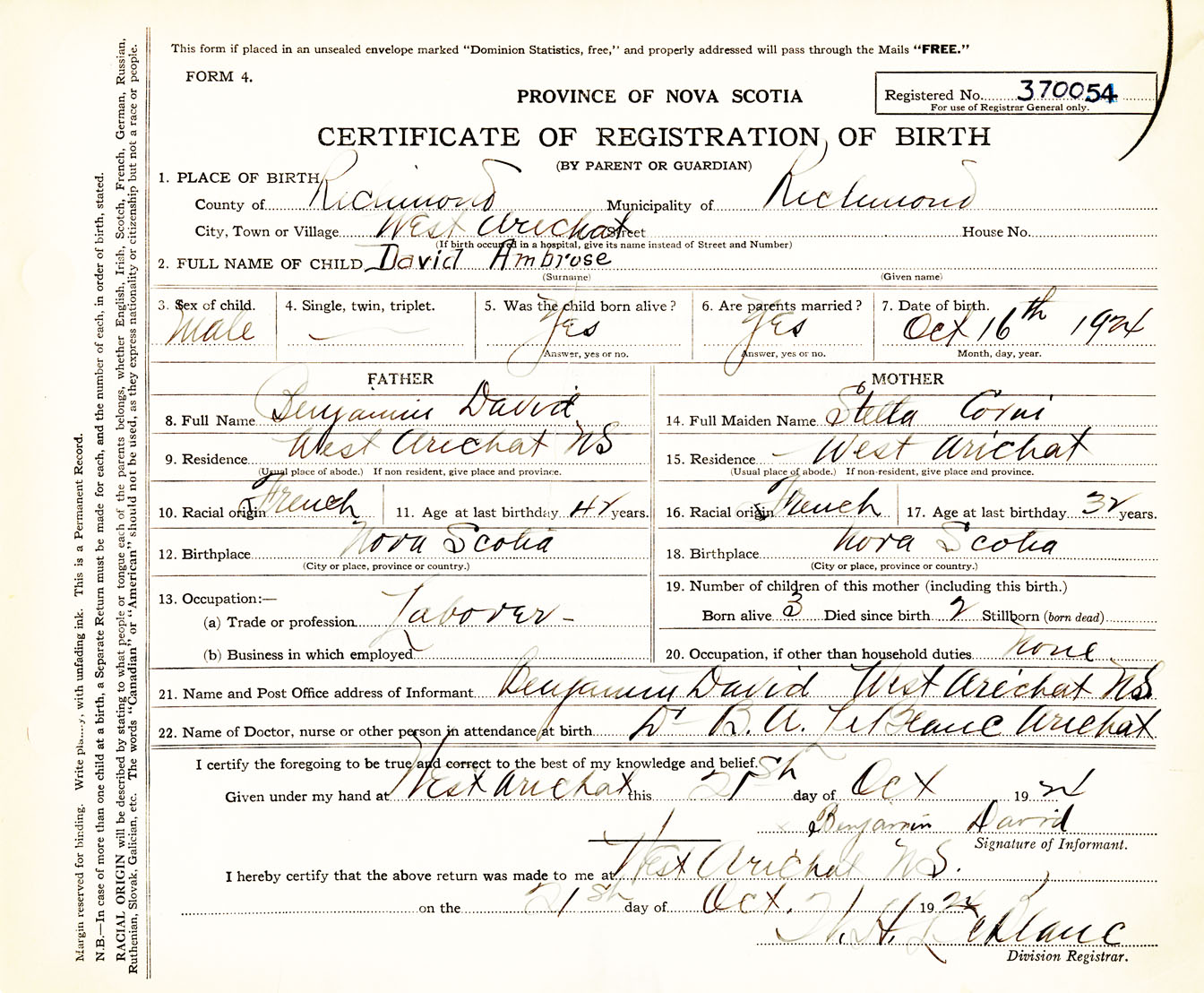 Male Birth Registration: Year: 1924 number: 37000054