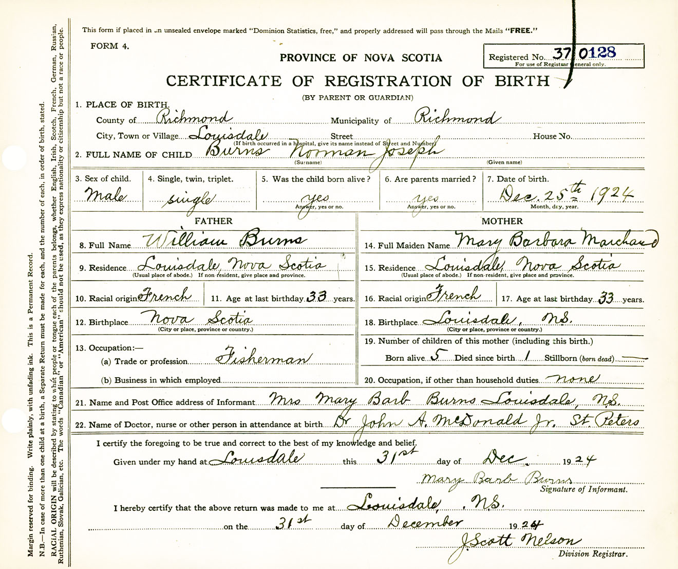 Male Birth Registration: Year: 1924 number: 37000128