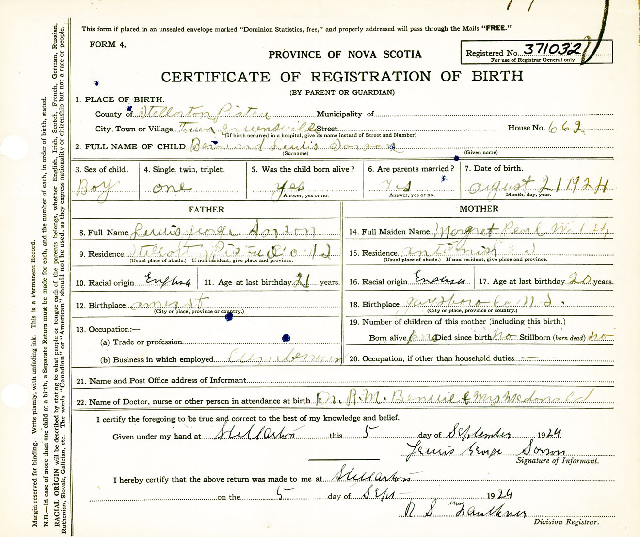 Male Birth Registration: Year: 1924 number: 37100032