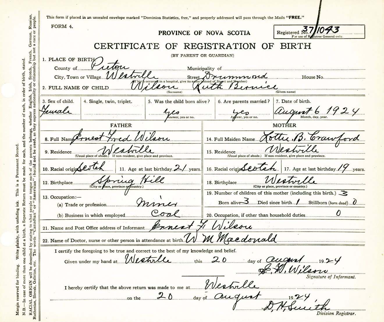 Female Birth Registration: Year: 1924 number: 37100043