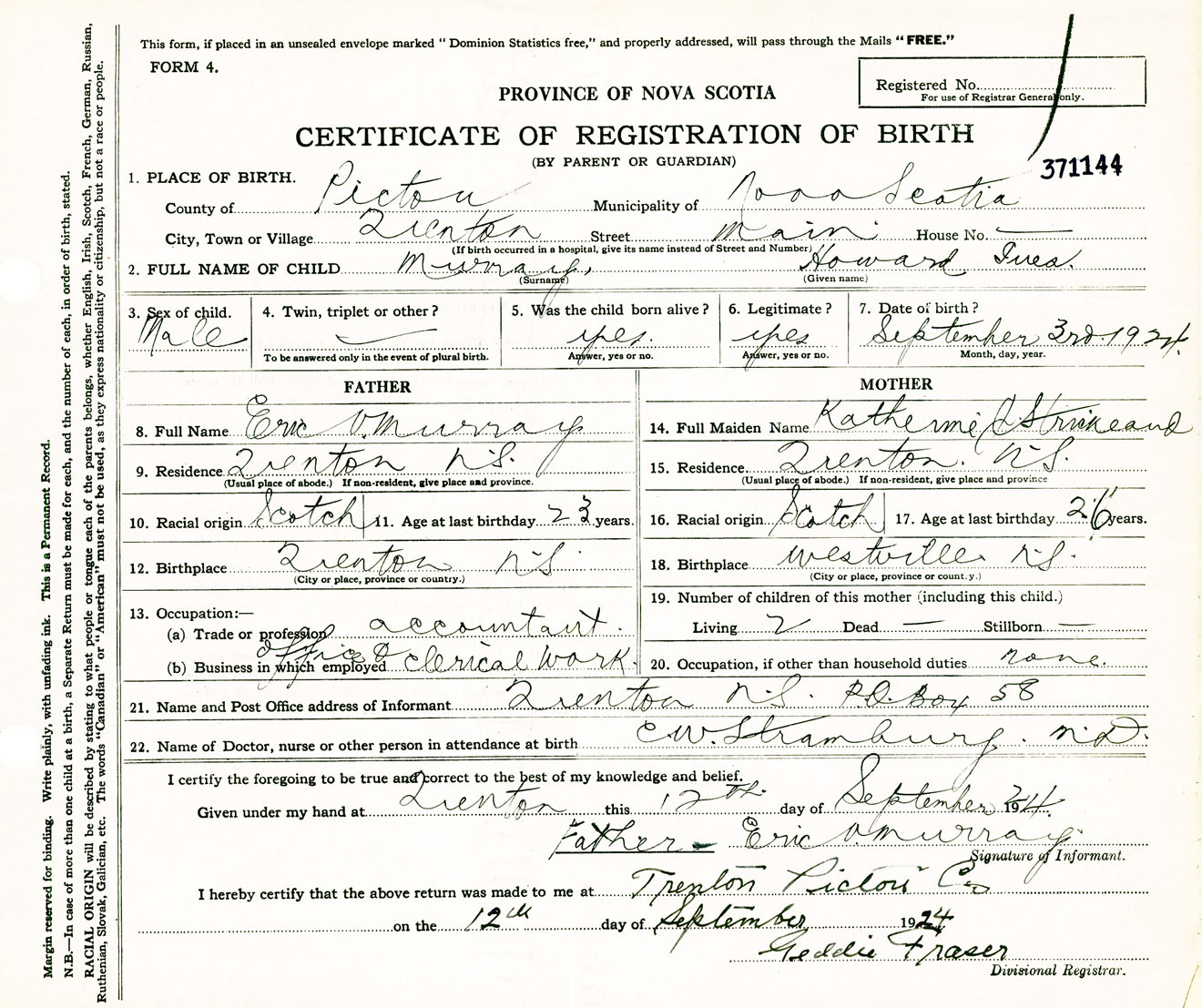Male Birth Registration: Year: 1924 number: 37100144