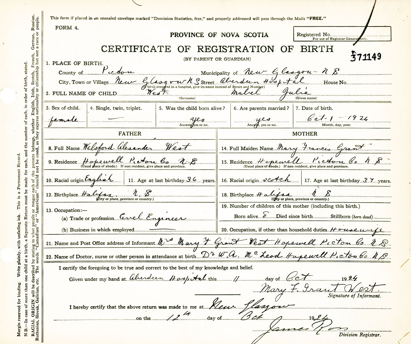 Nova Scotia Archives — https://archives.novascotia.ca/vital-statistics/birth/?ID=447761