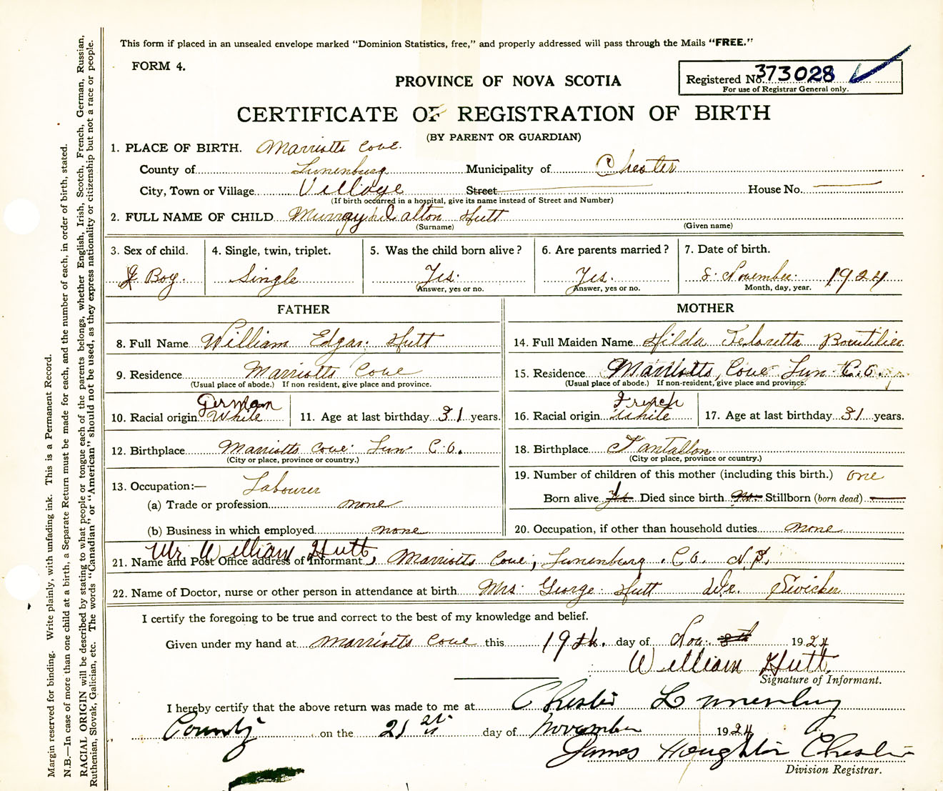 Male Birth Registration: Year: 1924 number: 37300028