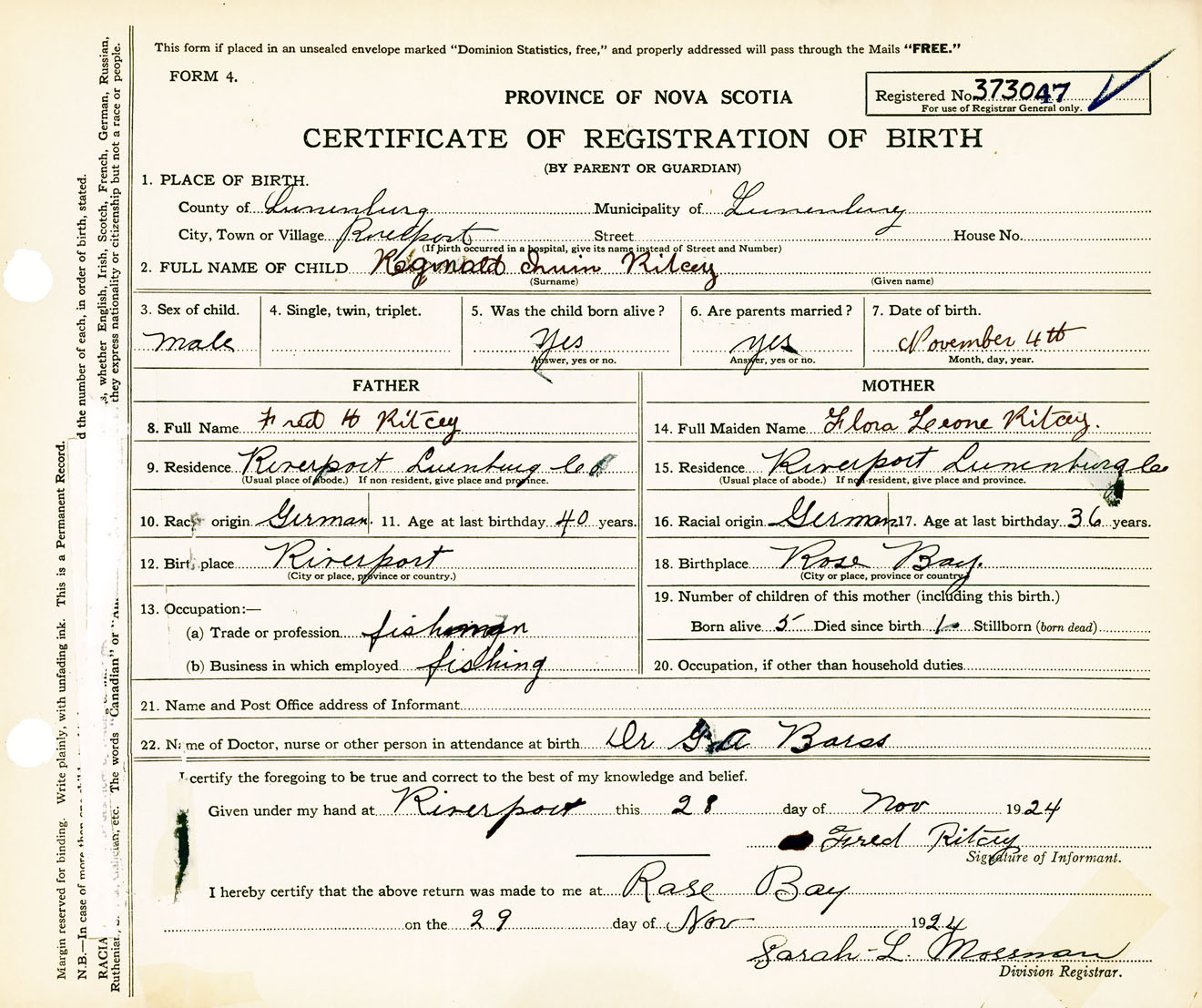 Male Birth Registration: Year: 1924 number: 37300047