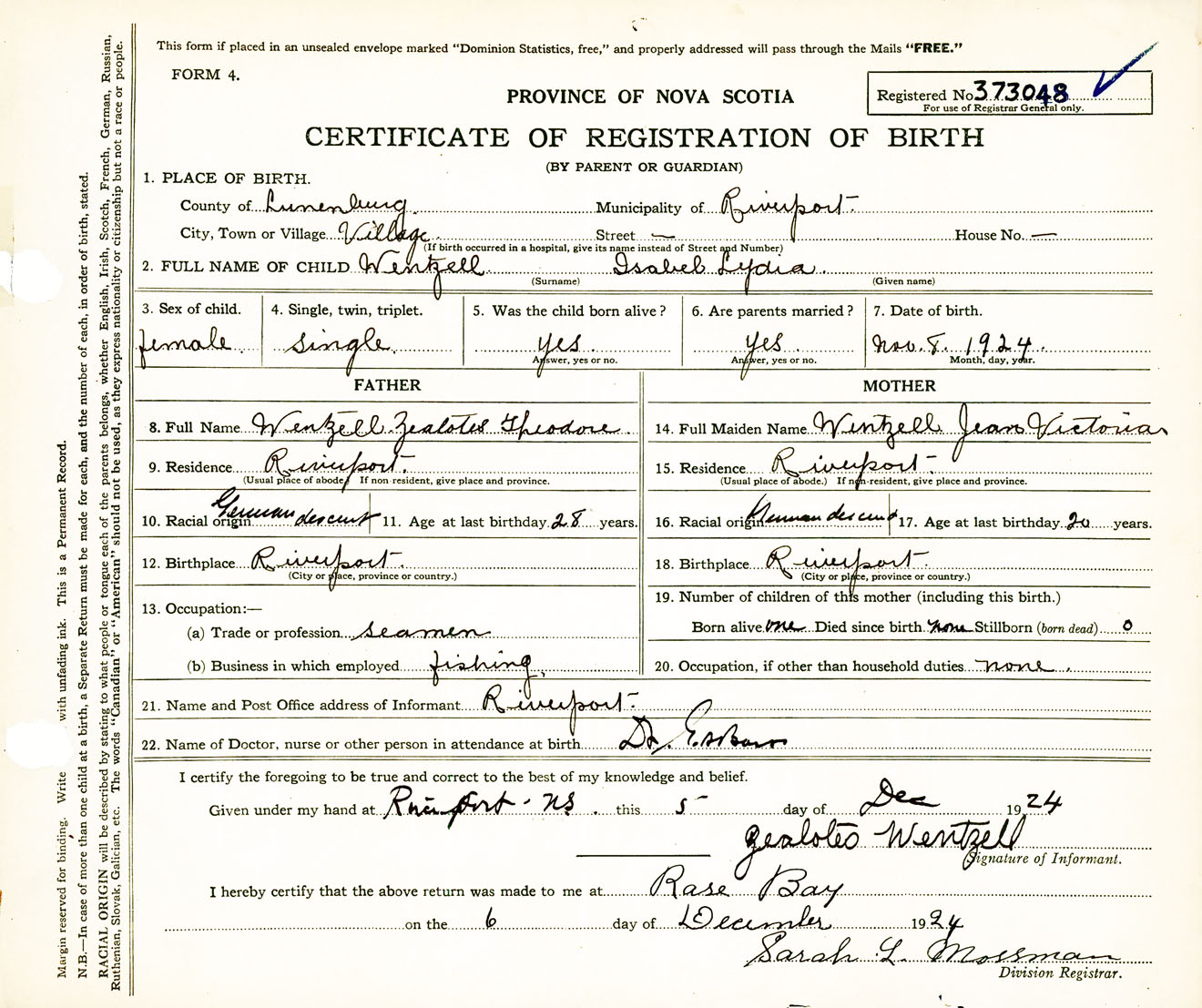 Female Birth Registration: Year: 1924 number: 37300048
