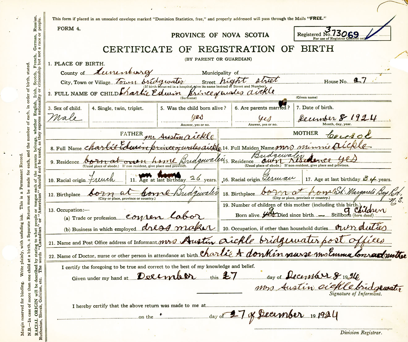 Male Birth Registration: Year: 1924 number: 37300069