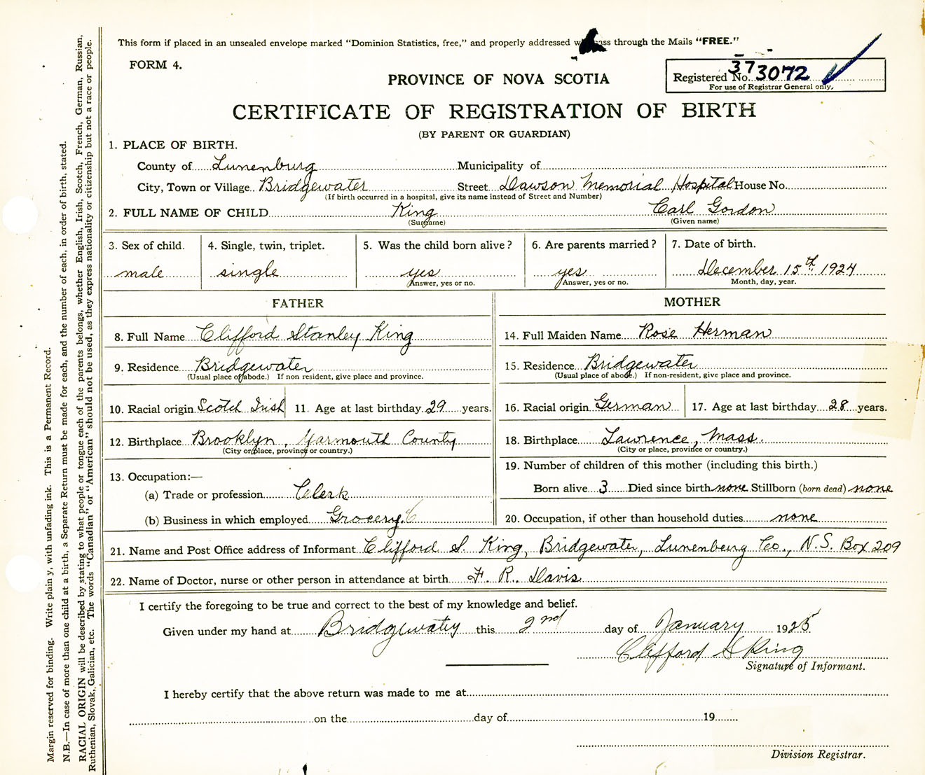 Male Birth Registration: Year: 1924 number: 37300072