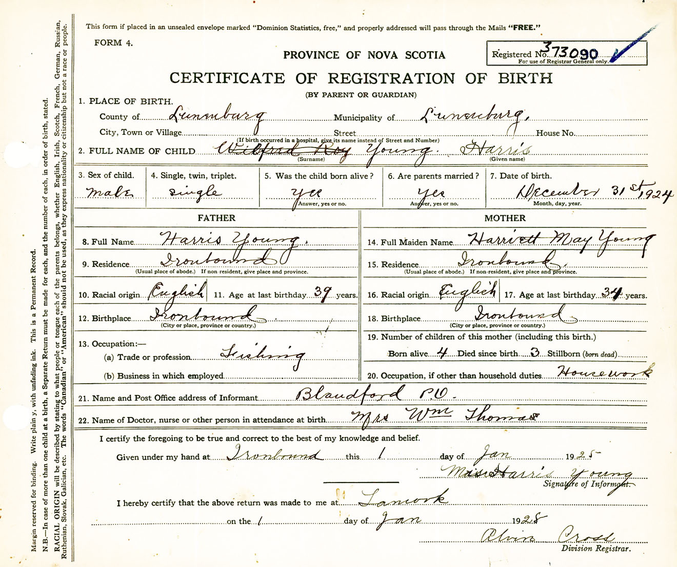 Male Birth Registration: Year: 1924 number: 37300090