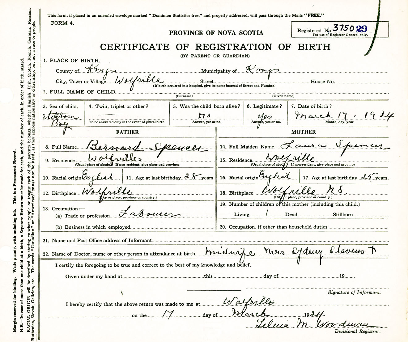 Male Birth Registration: Year: 1924 number: 37500029