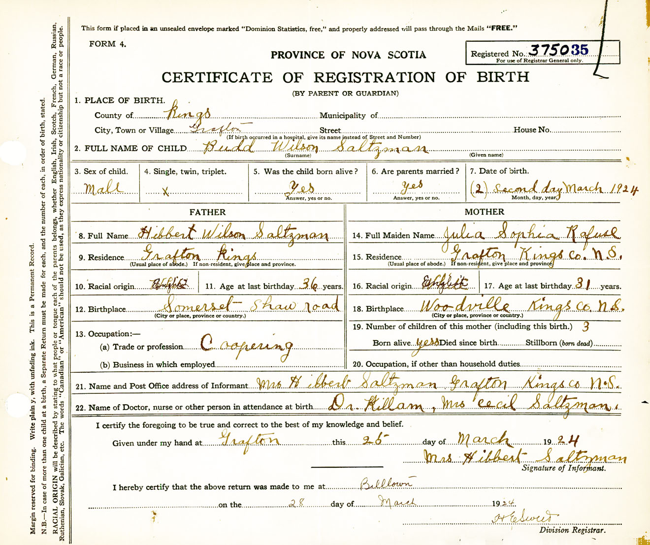 Male Birth Registration: Year: 1924 number: 37500035