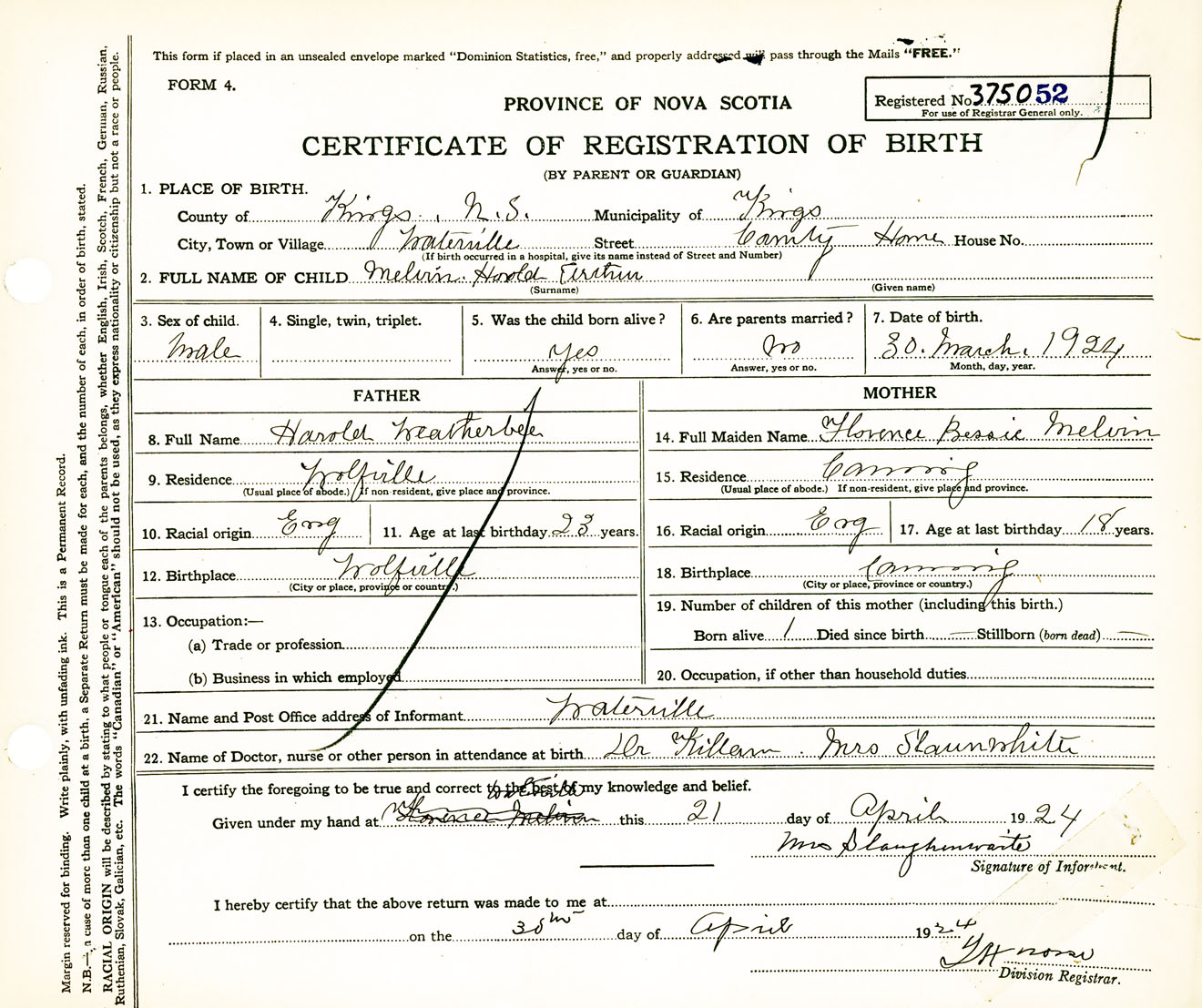 Male Birth Registration: Year: 1924 number: 37500052
