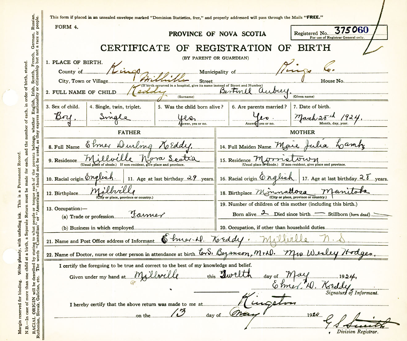 Male Birth Registration: Year: 1924 number: 37500060