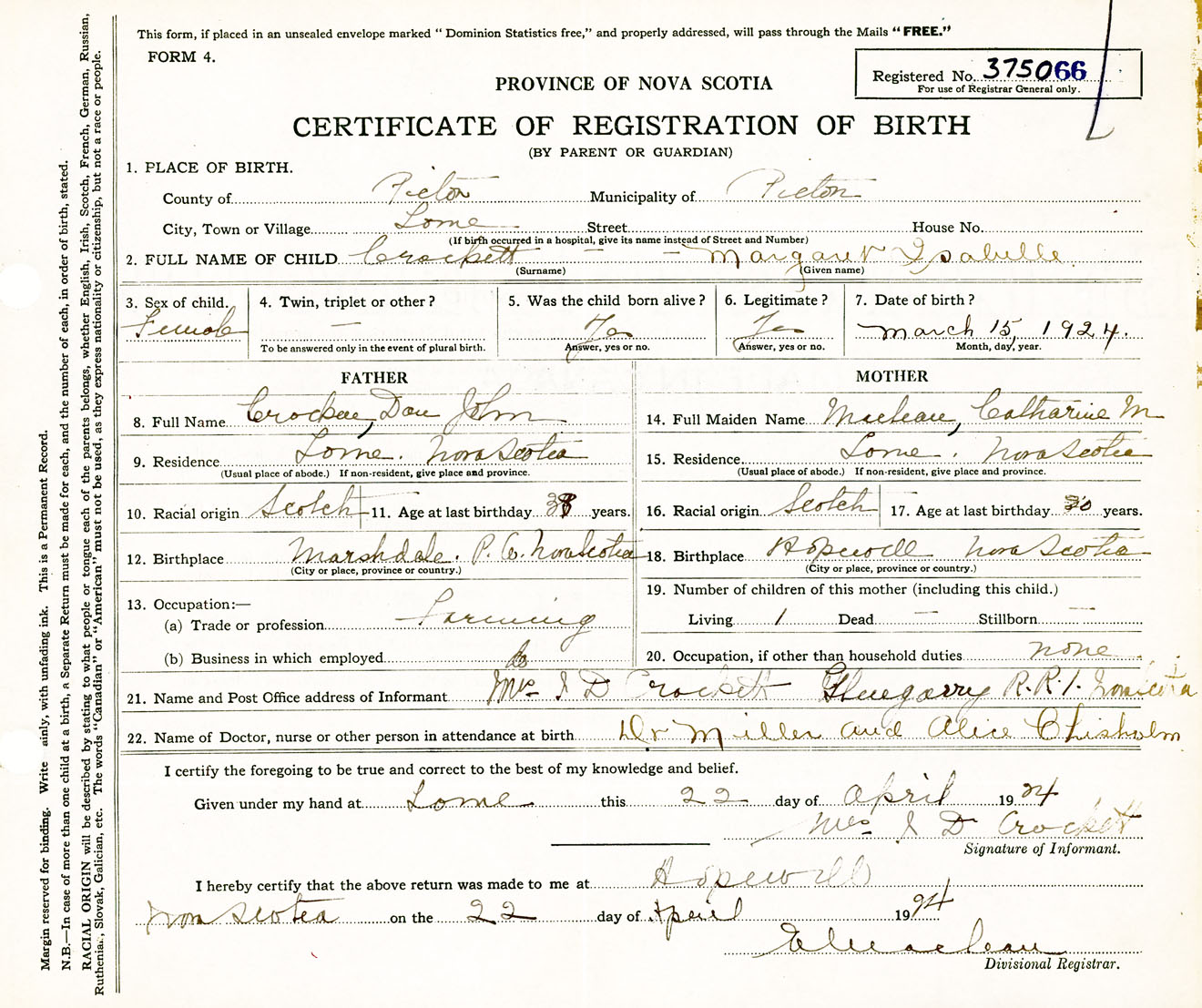 Female Birth Registration: Year: 1924 number: 37500066