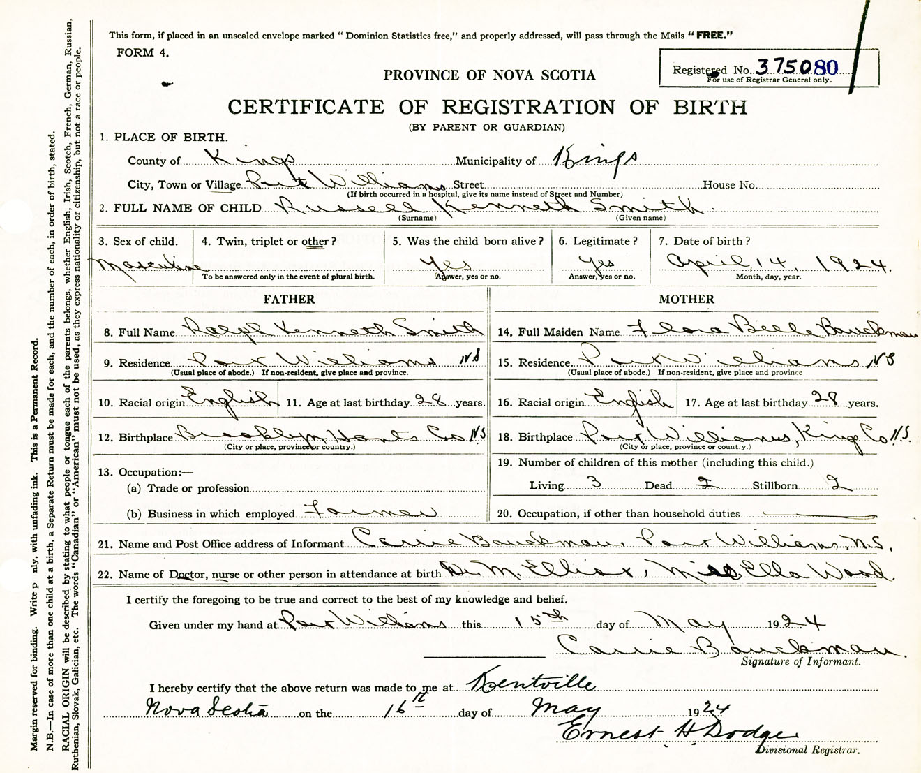 Male Birth Registration: Year: 1924 number: 37500080