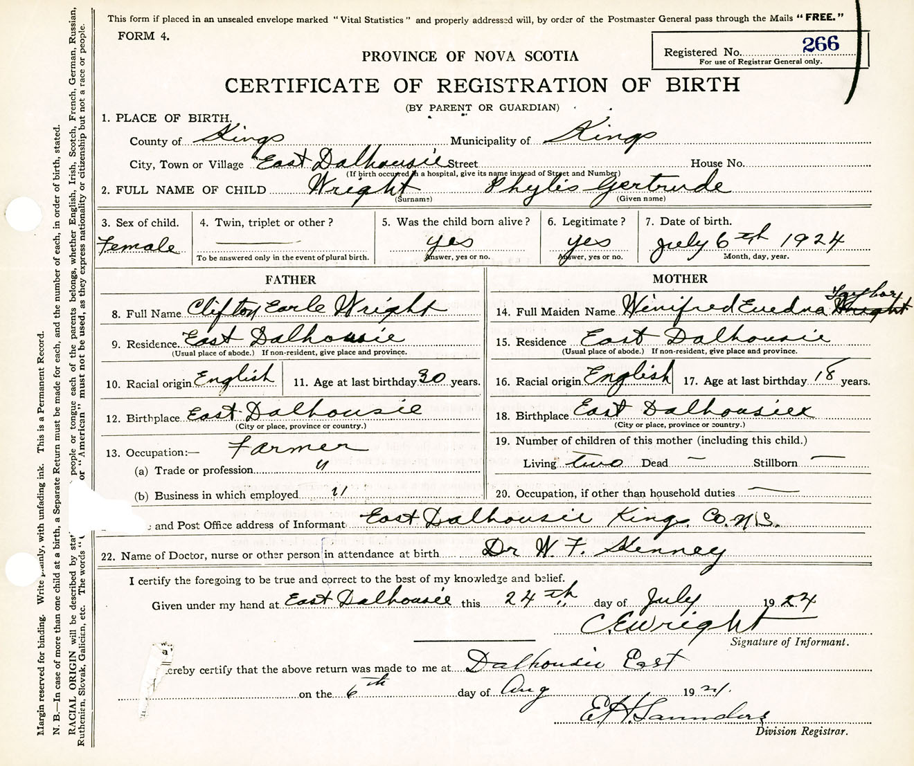 Female Birth Registration: Year: 1924 number: 37500266