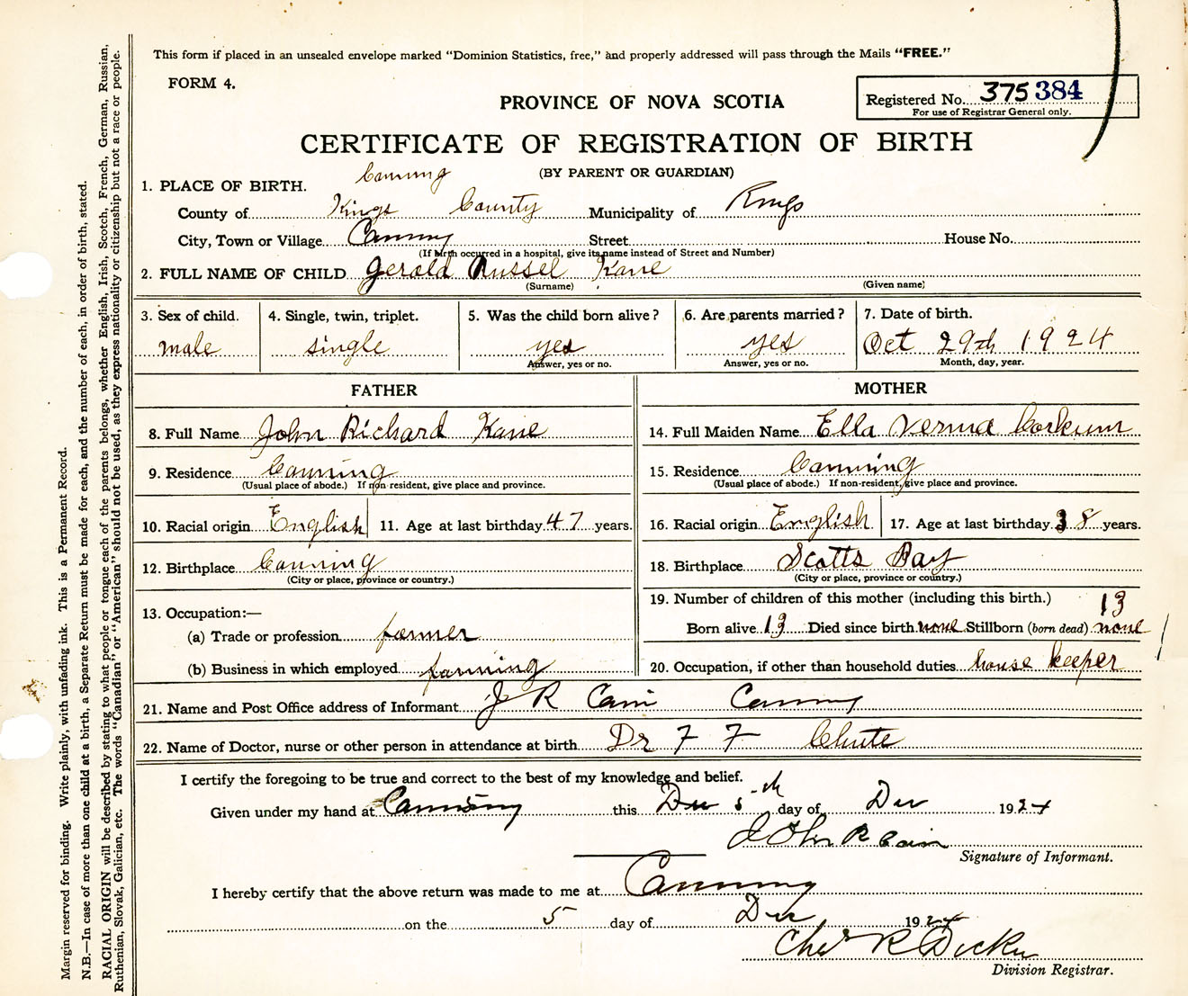 Male Birth Registration: Year: 1924 number: 37500384