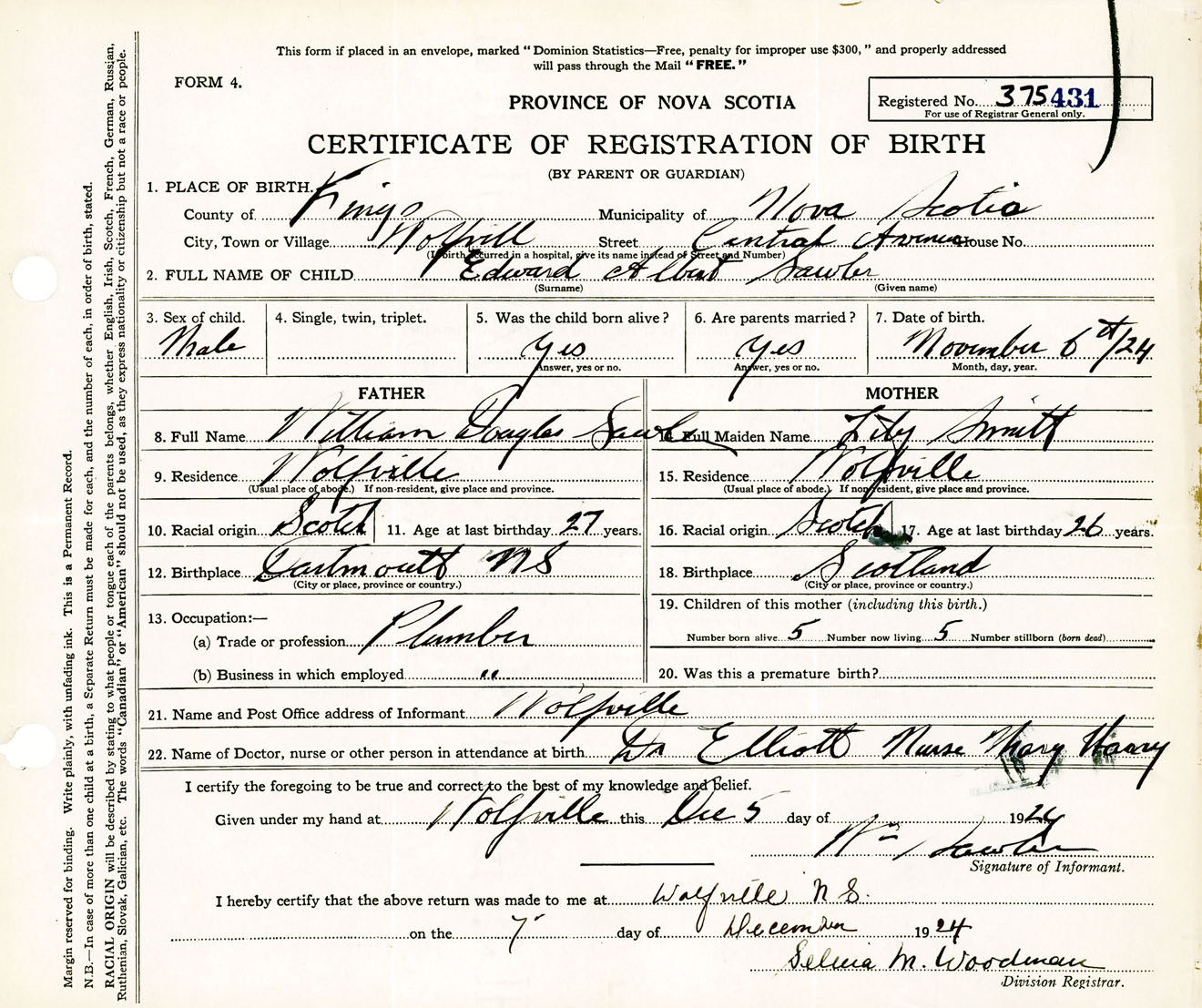 Male Birth Registration: Year: 1924 number: 37500431