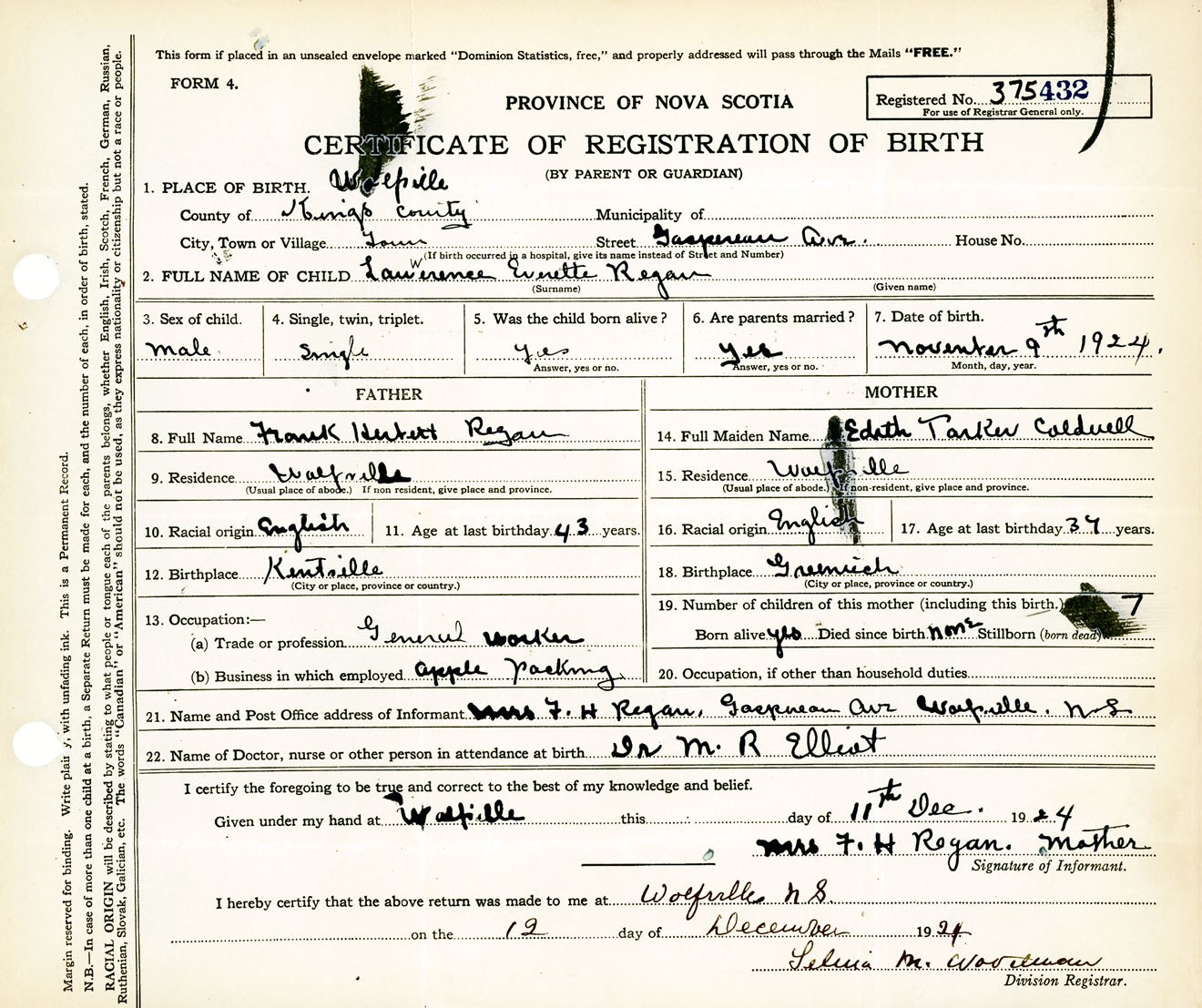 Male Birth Registration: Year: 1924 number: 37500432