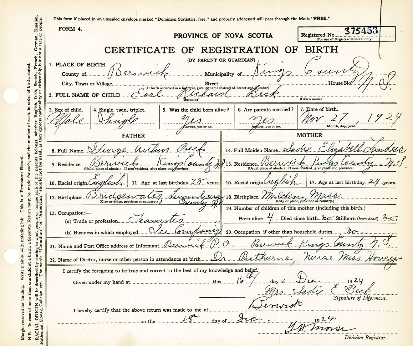 Male Birth Registration: Year: 1924 number: 37500453