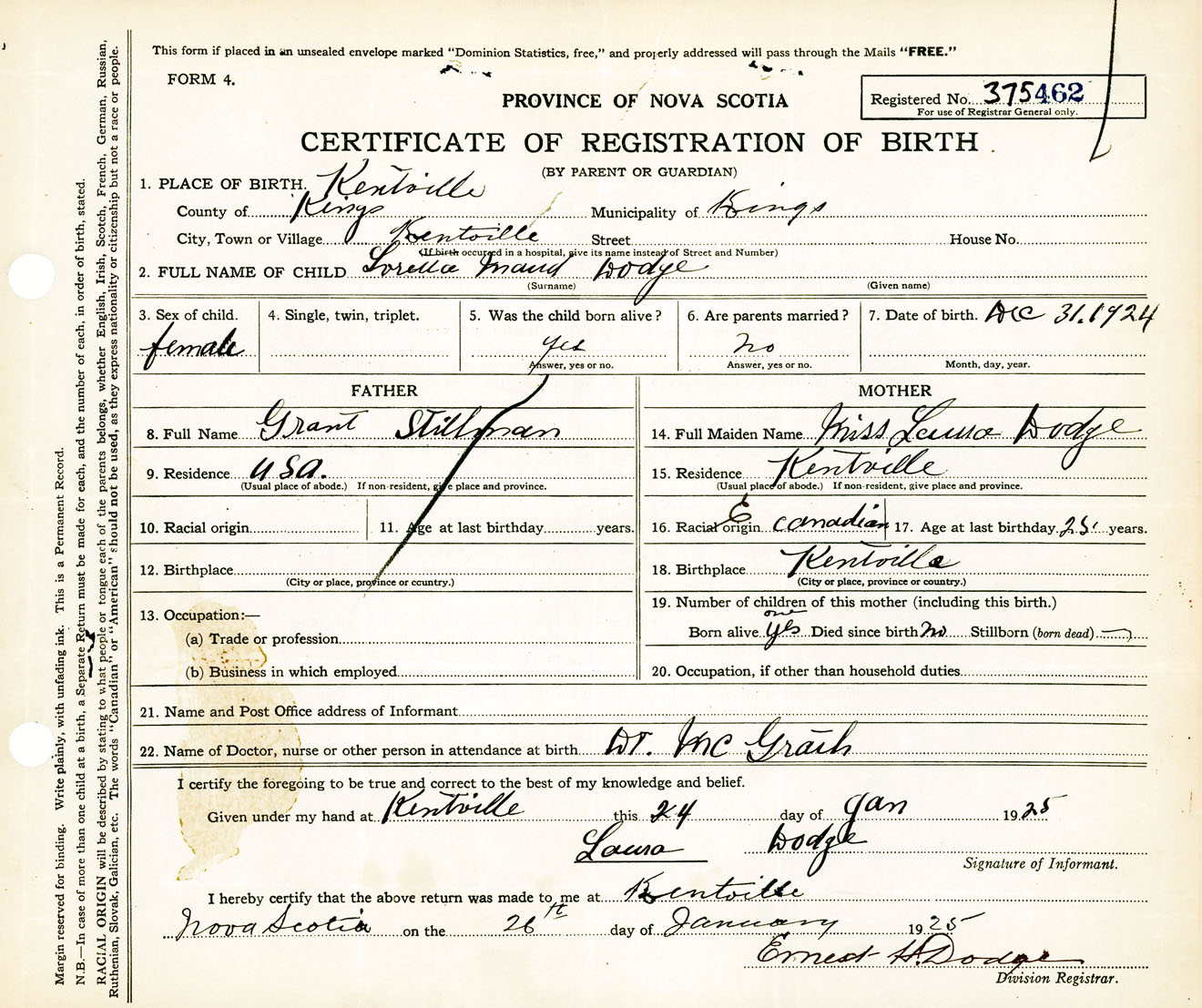 Female Birth Registration: Year: 1924 number: 37500462
