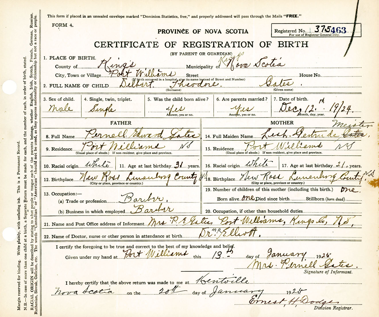 Male Birth Registration: Year: 1924 number: 37500463
