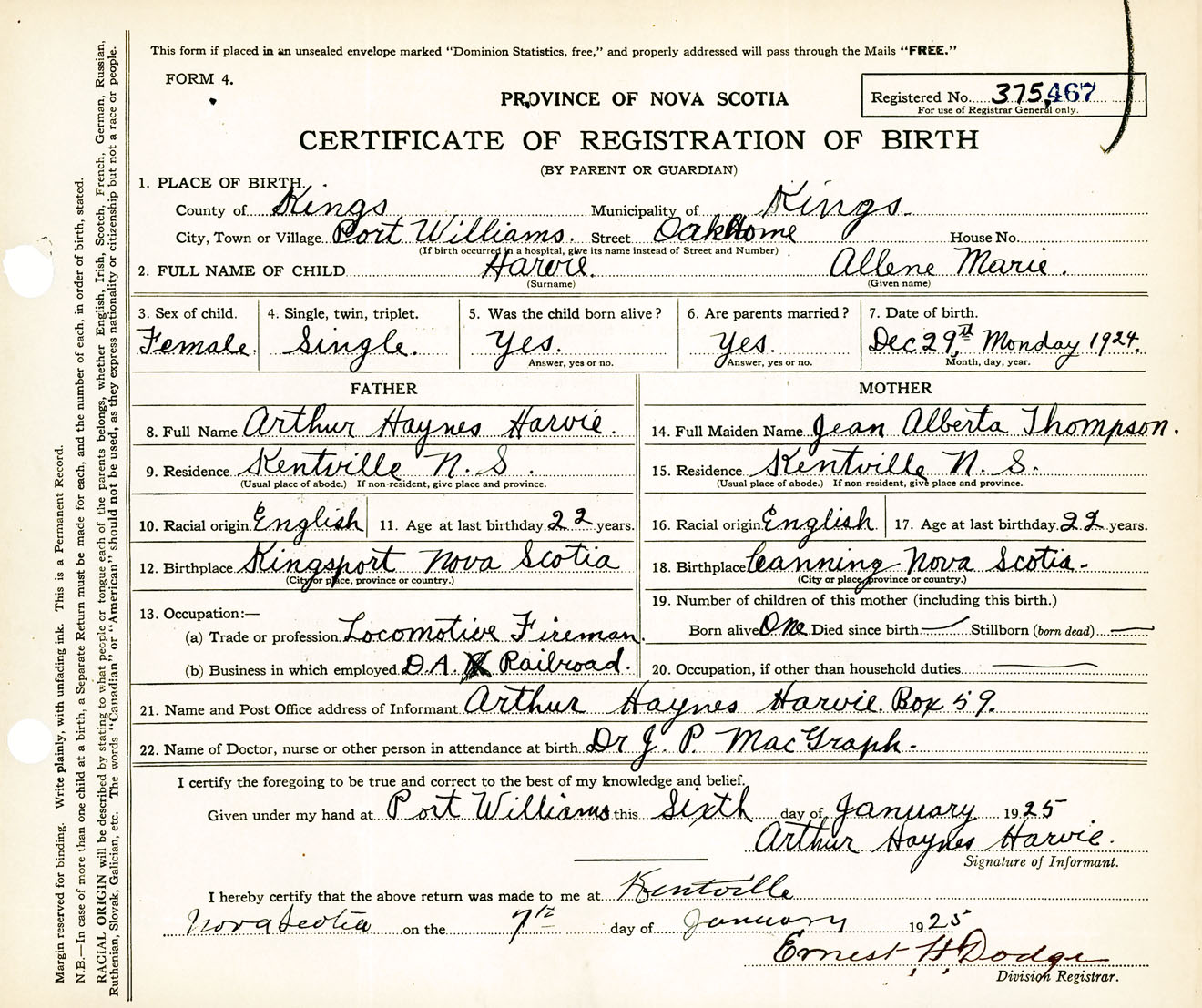 Female Birth Registration: Year: 1924 number: 37500467