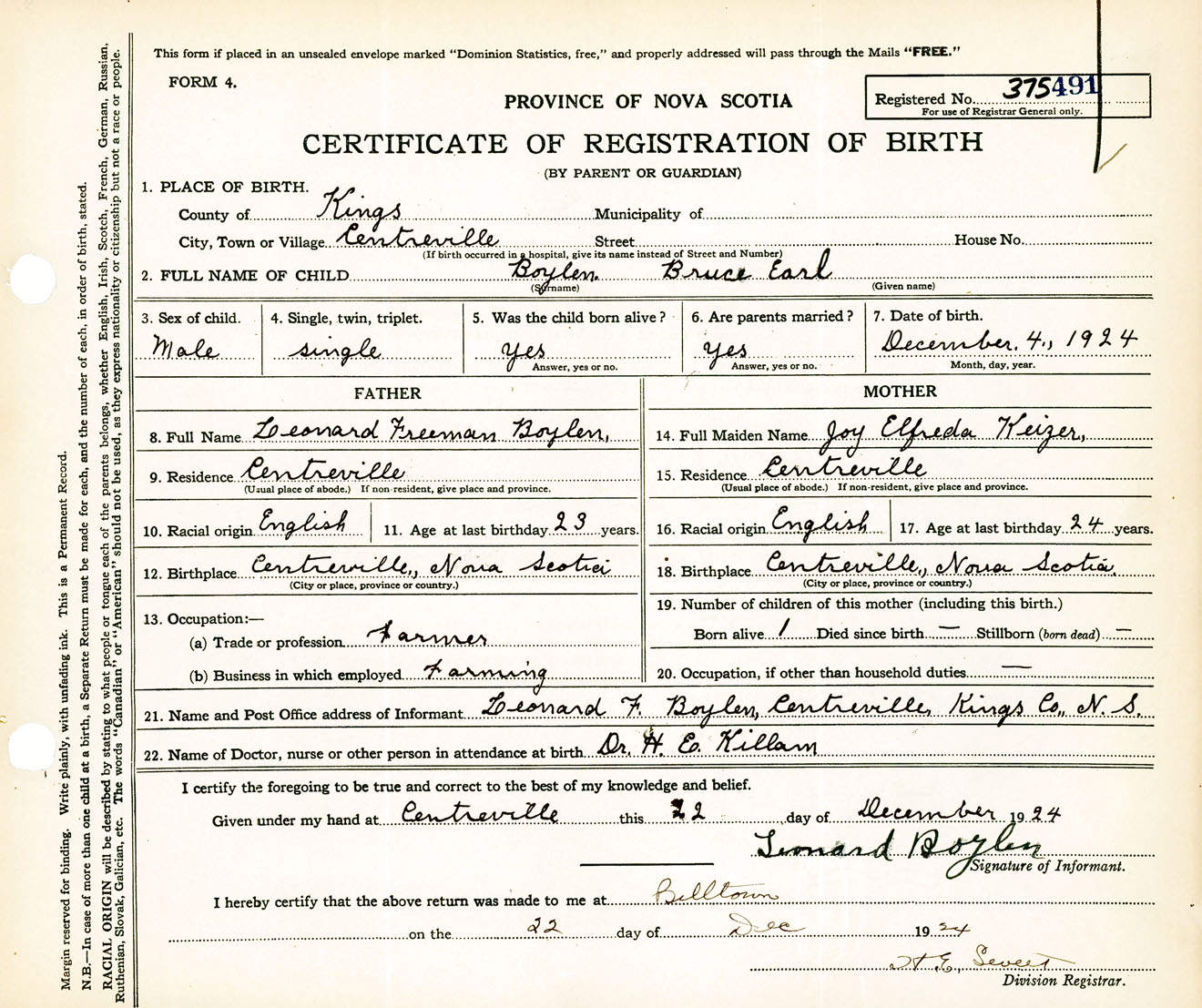 Male Birth Registration: Year: 1924 number: 37500491