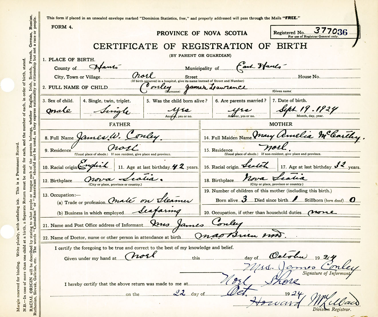 Male Birth Registration: Year: 1924 number: 37700036